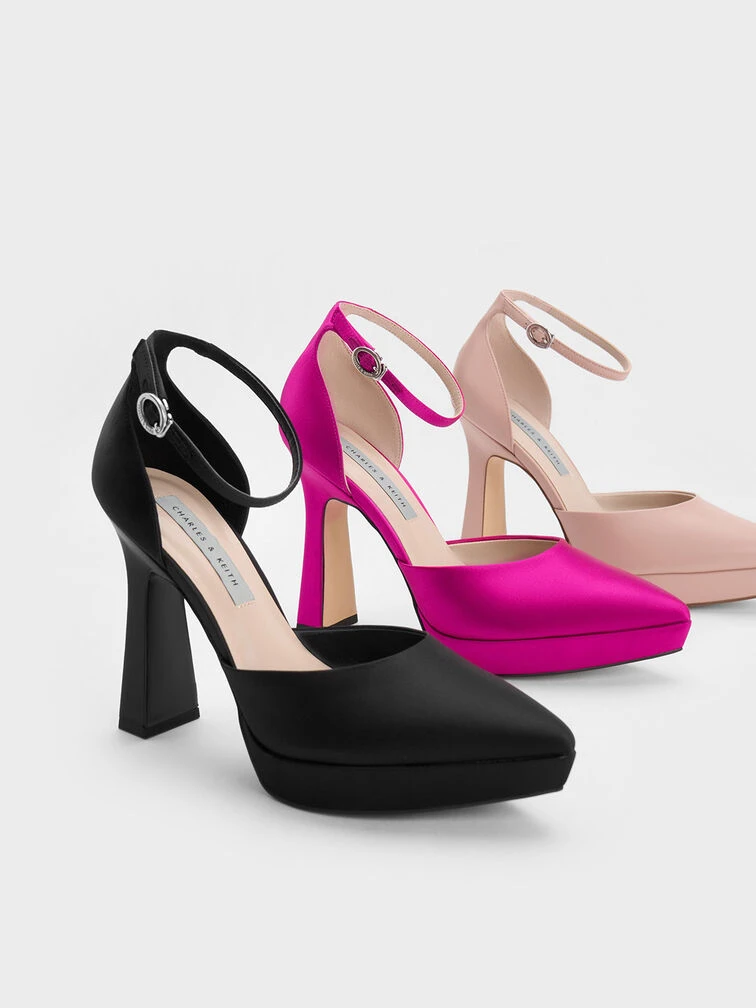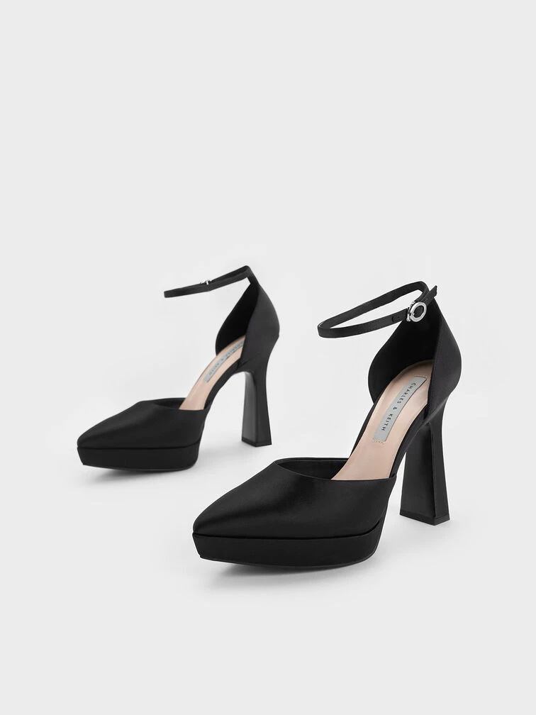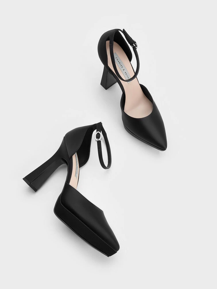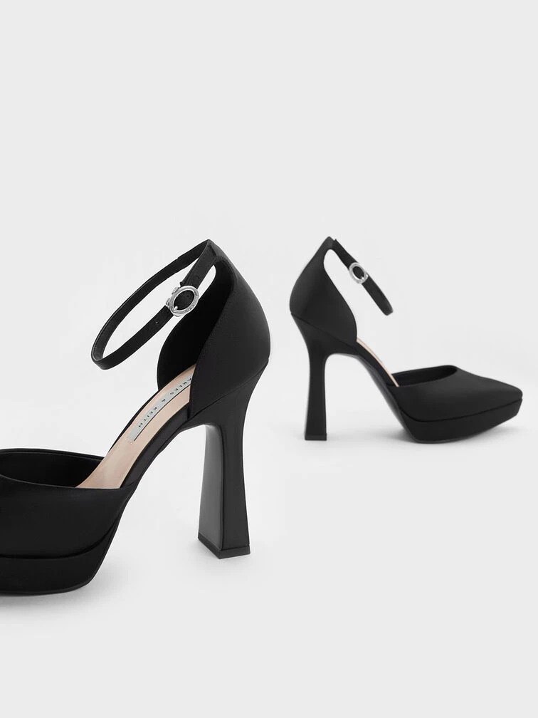 Set on towering 11.5cm platform heels, these ankle strap d’Orsay pumps are guaranteed to give you a stature boost as soon as you put them on. Plus, the pointed-toed silhouette creates a leg-lengthening effect that will flatter any frame. In black, they are your ever-dependable wardrobe ally. So wear them with everything from micro dresses to tailored suits.