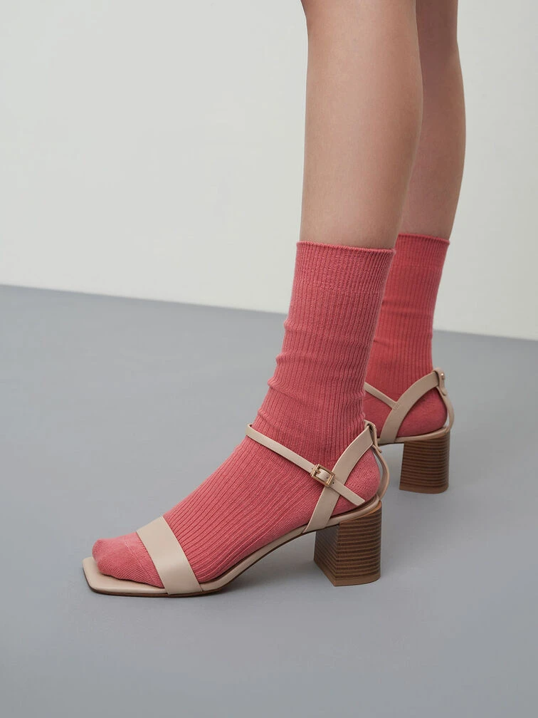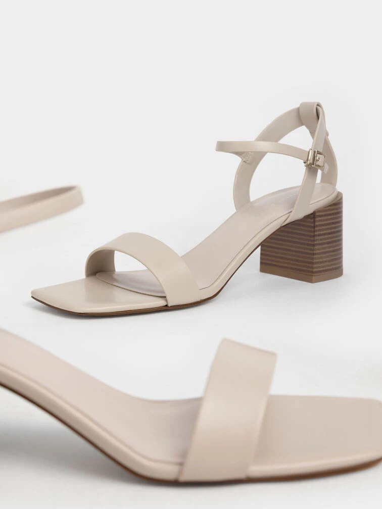 Everyone needs a pair of stylish barely-there sandals in their footwear collection. These chalk-white sandals are comfortable yet chic, thanks to the adjustable ankle strap. The square-toe design, as well as sturdy stacked heels also ensure a proper fit and walkability throughout the day. To embrace your quirky personality, pair these gems with a pinstripe top and floral-print flared pants.