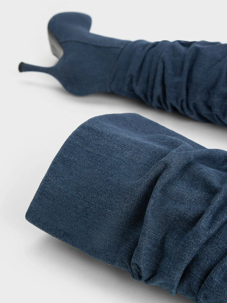 For the girl who loves her denim, even in the colder and cooler temperatures of fall and winter, this Aster knee-high are made for you. Complete in a denim finish, the effortlessly cool aesthetic and colour will instantly set you apart from the crowd. Thanks to its subtle ruched design, the simple knee-high boots silhouette has also been refreshed for added visual interest.