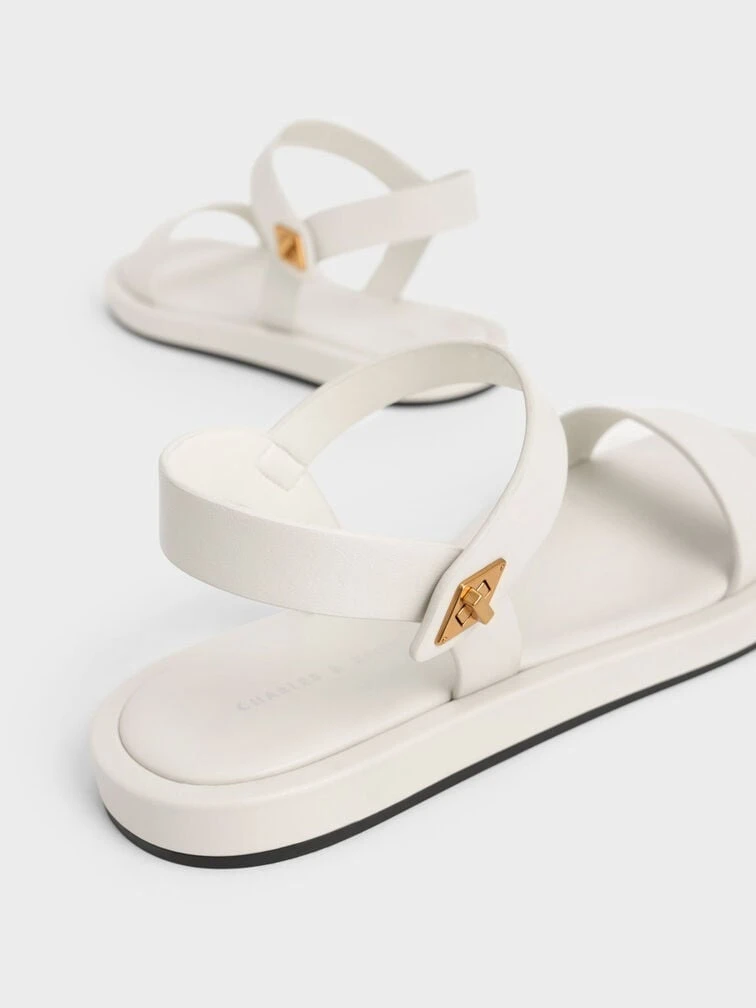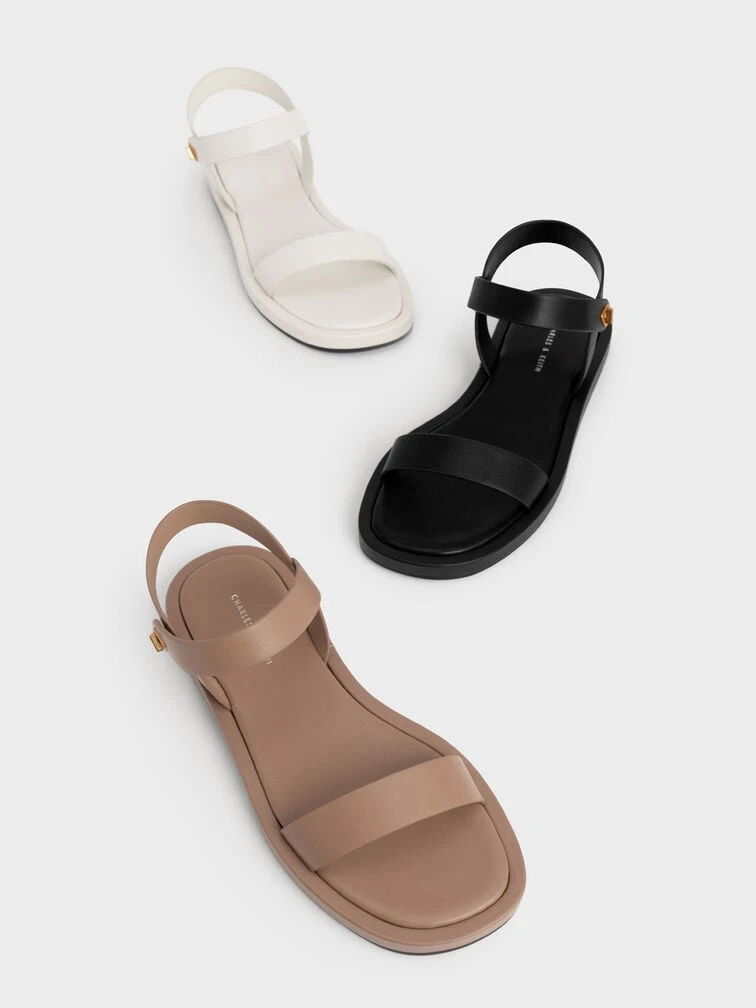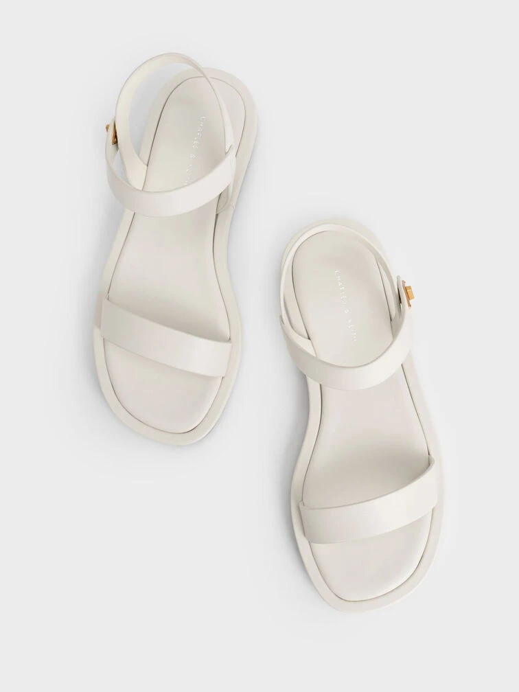 Refresh your wardrobe staples with these charming back strap sandals in match-all chalk. Understated in design, these beauties will be the perfect finishing touch to all your outfits. They also come fitted with a glossy gold-tone metallic fastening that allows you to slip into them with ease. Style yours with a shirt dress for a casual off-duty look.