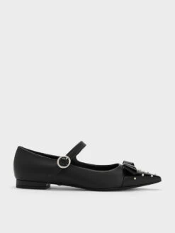 If you are searching for classic flats with a unique twist, these all-black Mary Jane flats are a must-have. They showcase a distinctive bow detail on the toe cap, which is also adorned with delicate beads, adding a chic and eye-catching element to the shoe. Crafted from genuine leather, these flats offer a luxurious look and feel, becoming even softer with every wear. They are destined to become a closet staple for seasons to come.