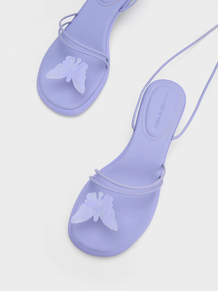 For a masterful take on sunshine-ready style, turn to these sandals. They feature slim ties that wrap around your ankles and have flower-embellished ends. The best part? The toe grips are shaped like butterflies and will add visual interest to your overall look. Style these lilac beauties with your favourite floaty dresses.