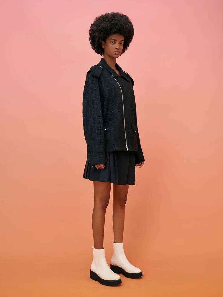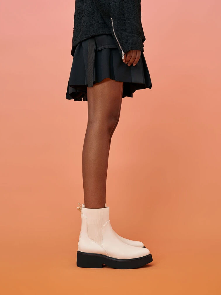 These chalk Chelsea boots are set on sensible platforms and block heels in contrasting black. Offering a sock-like fit thanks to the elasticated panels, you don’t even have to wear socks for comfort. Understated and minimalist, they are also versatile enough to go with almost anything, from skinny jeans to midi dresses.
