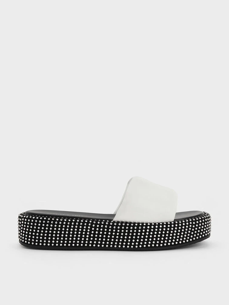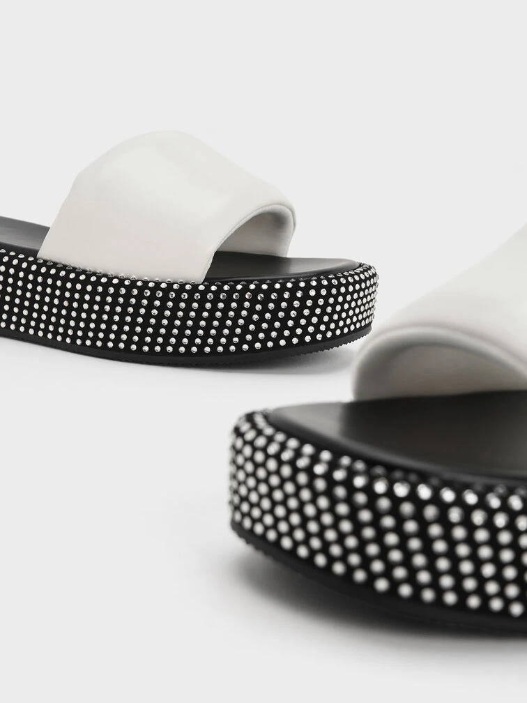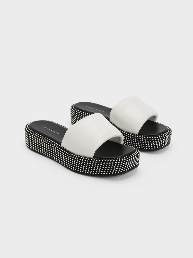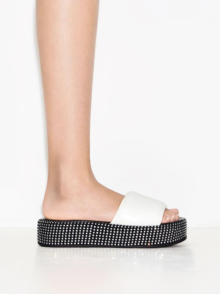Look no further than this pair of flatform sandals for shoes that effortlessly exude glamour from day to night. Constructed from lightweight nylon and featuring cushioned soles, these sandals are designed to ensure your feet remain cool and comfortable throughout the day. Adorned with an array of sparkling crystals around the sides, this pair will mesmerise with its extraordinary allure when it catches the light.