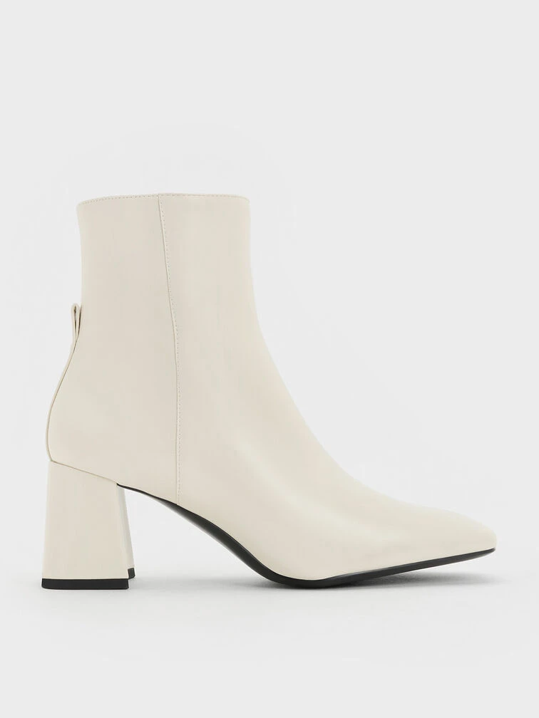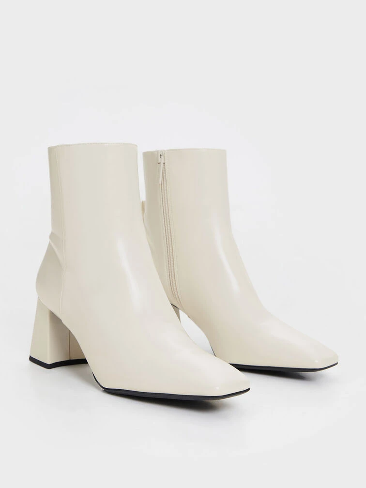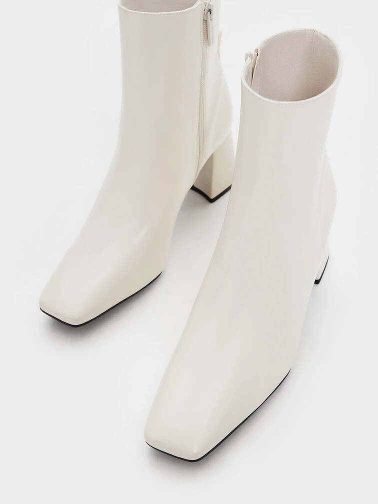 A staple pair of ankle boots is essential for any fall wardrobe, and these curved block heel boots are the perfect choice. They feature an elegant chalk finish elevated by sculptural details, including the curved block heels and square-toed silhouette, delivering a minimal yet sophisticated look. The convenient side zips ensure ease of wear, allowing you to effortlessly slip them on and off for both work and play.
