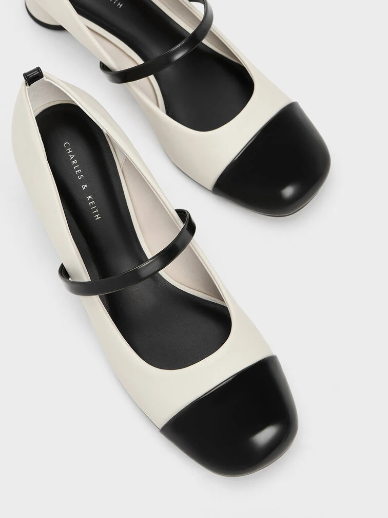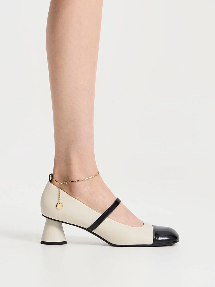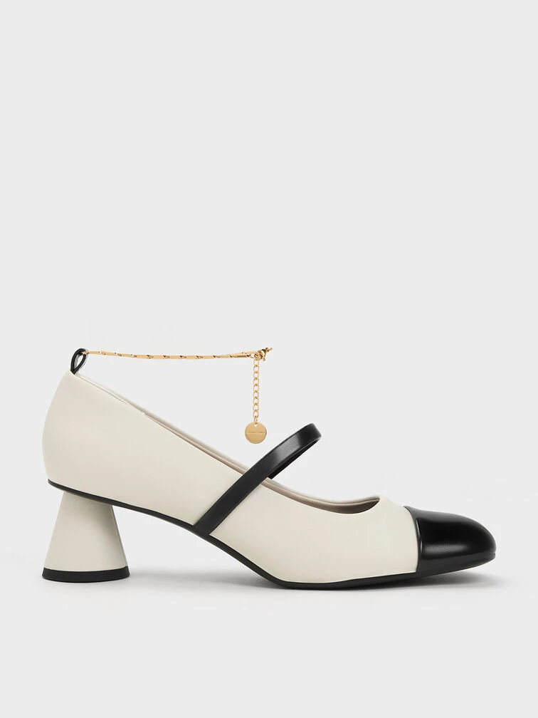 If you are looking for a pair of pumps that offer maximum style with minimal effort, then these Mary Jane pumps are just what you need. To begin with, the visually captivating black-and-white colourway is certain to catch eyes wherever you go, while the delicate chain-link straps add eye-catching details to the design. Style tip: you can detach the chain-straps and wear them as bracelets.