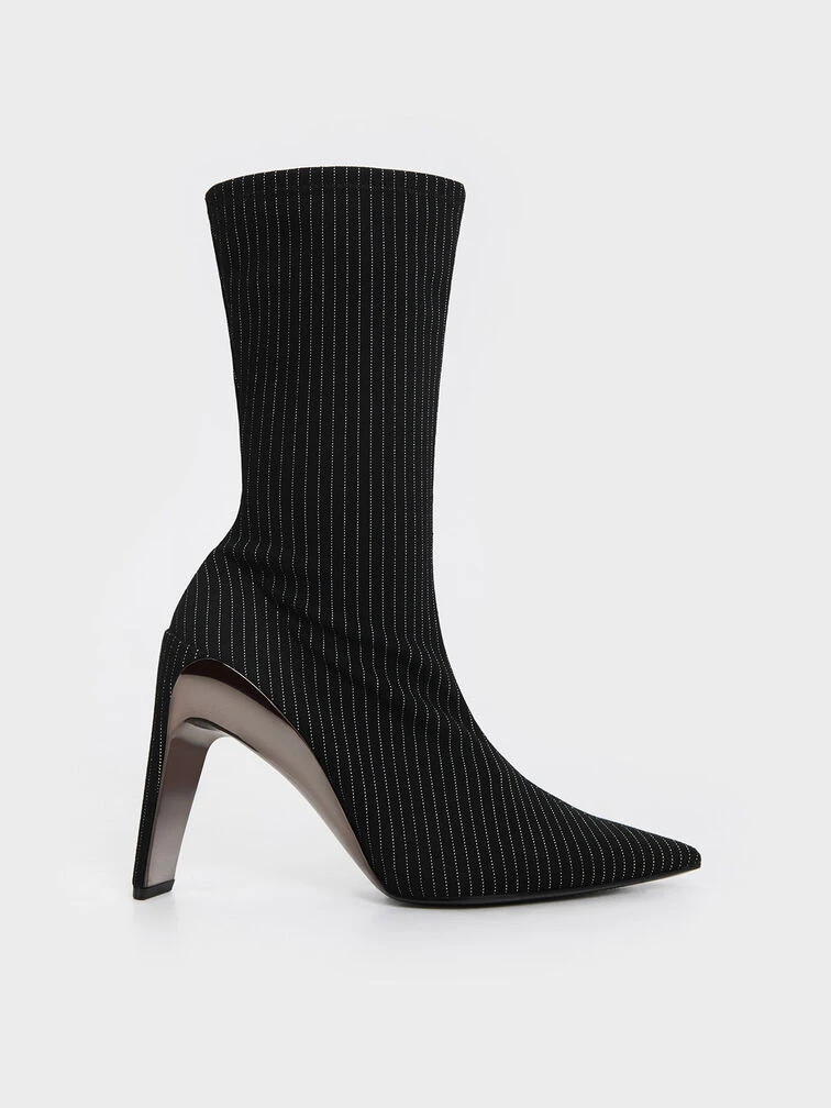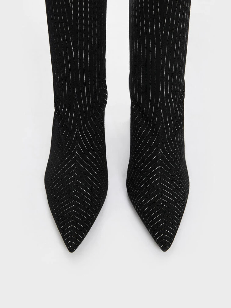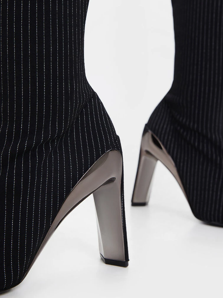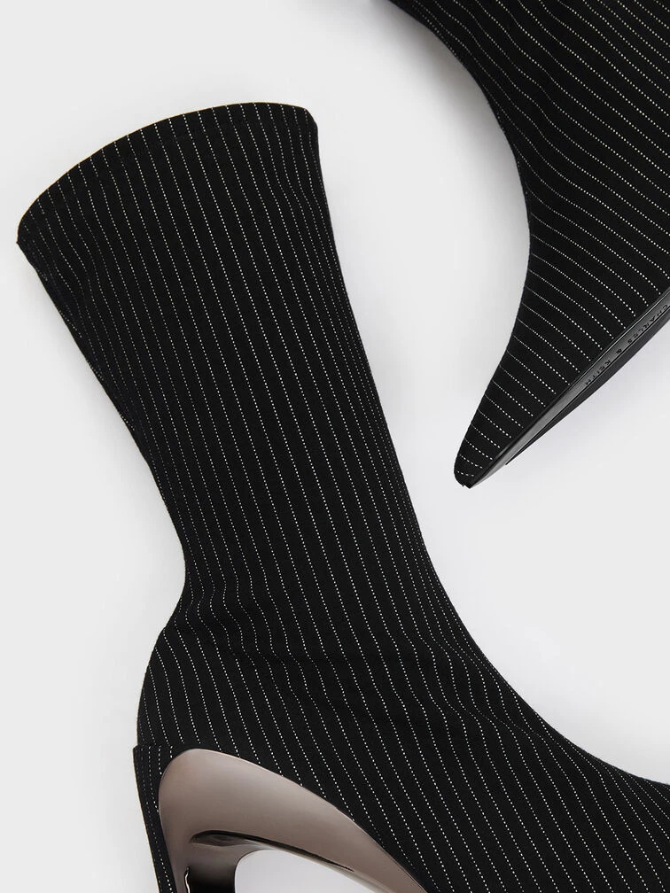 These Devon boots are ones that will effortlessly take you from the office to after-dark events in impeccable style. From the sharp pointed-toes to the metallic slant heels, the clean and captivating lines are exactly what make this pair of boots understated and striking at once. To top it off, they also feature an eye-catching striped design and metallic heels for extra style points.