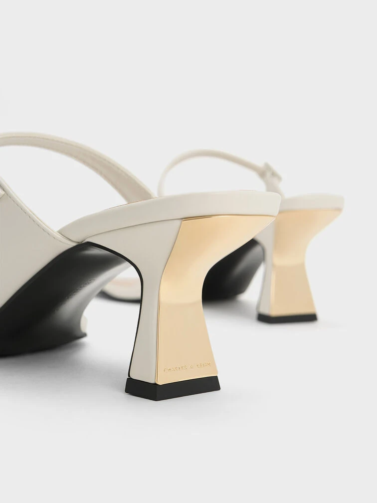 Elevating the classic heeled mule by way of a visually impactful asymmetrical design and dainty, adjustable double straps, these shoes will let you put your best fashion foot forward. In a clean white finish for maximum style versatility, they will add the perfect amount of polish to your every outfit. Set on 6cm blade heels for a moderate height boost that does not compromise on comfort, they are the perfect everyday shoe.