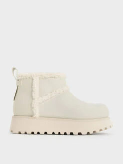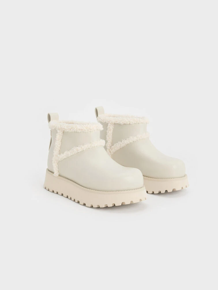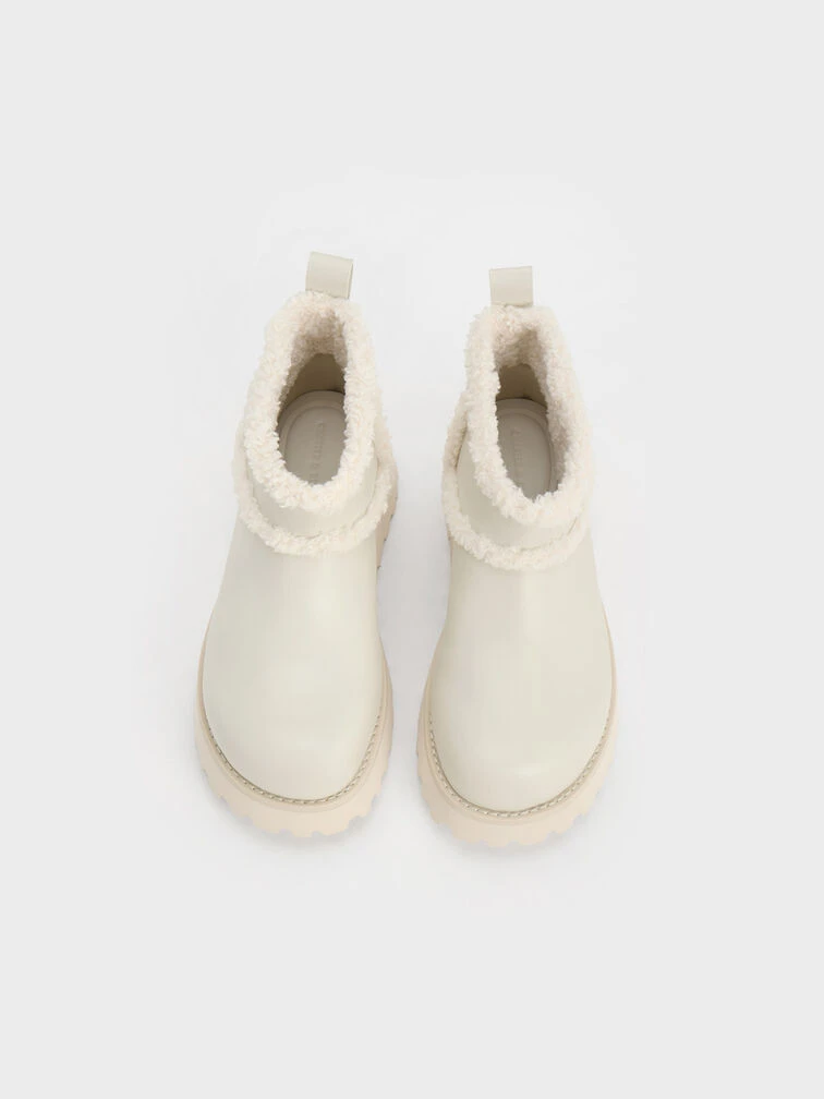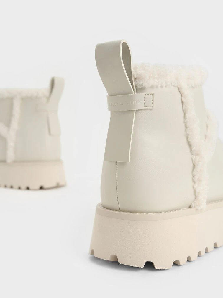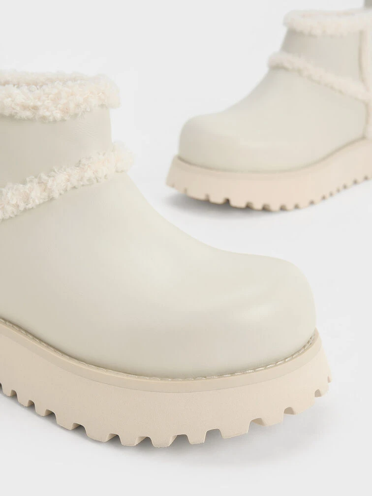 Keep warm this season with these fur-trim flatform boots. Light-coloured fur trim lines the inside of the boots and its uppers, complementing the classic chalk finish and adding a textural dimension to the design. Fitted with flatform soles that offer a height boost and all-day comfort, you can wear these with your favourite cosy knits for the ultimate relaxed winter look.