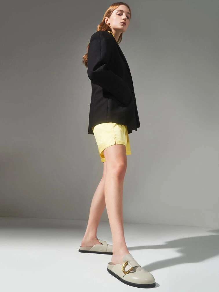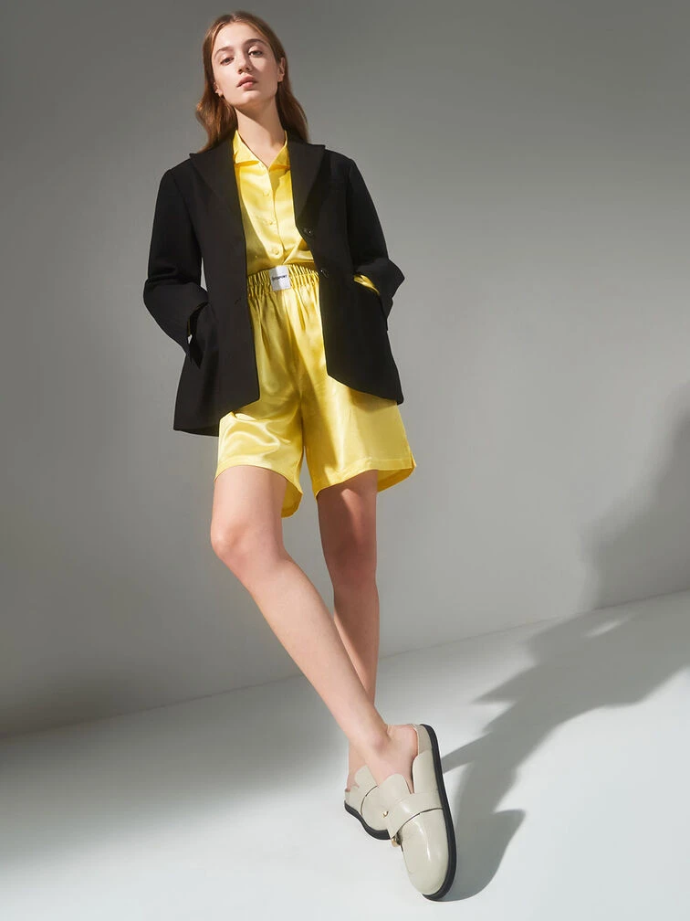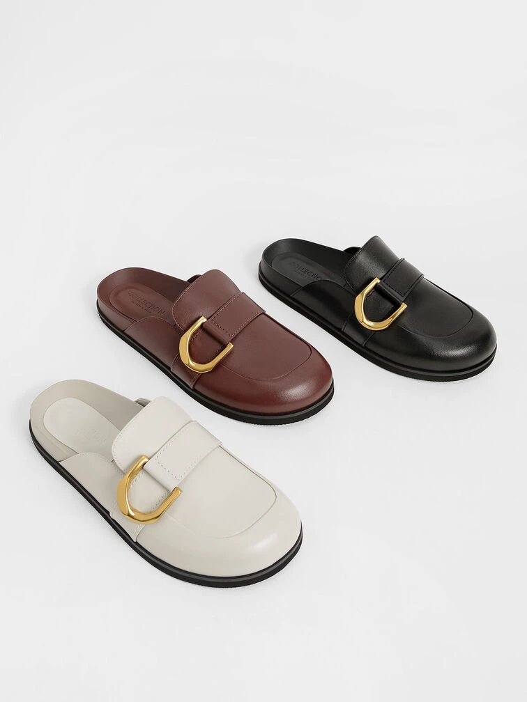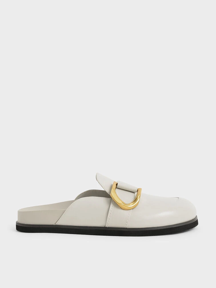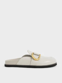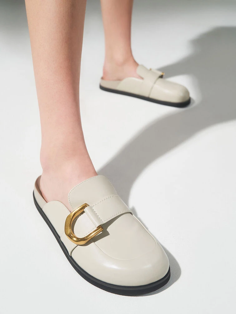 Between the elegant slip-on silhouette and the striking metallic buckle in a gold-tone finish, our loafer mules — inspired by our iconic Gabine saddle bag collection — are a subtle way to semaphore your fashion prowess. Made from genuine calf leather, these beauties will only get better with time, plus the chalk-white finish promises versatility and verve. Watch them take you from day-to-night with effortless ease. For the ultimate palate-cleansing ensemble, team them with a camel-coloured dress and and shoulder bag in a neutral hue.