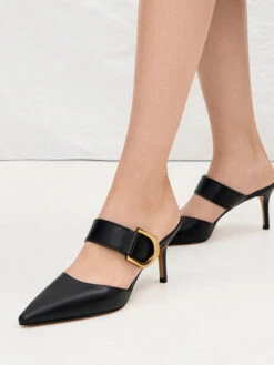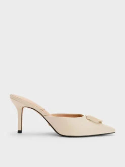 These pointed-toe mules in chalk white will add instant polish to any look. They are part of our iconic Gabine range and are embellished with the distinctive U-shaped buckles in a matching colour, giving them a chic tonal look. Versatile enough to go with a wide range of outfits, you can get as creative as you like with your style. Thanks to their 8cm stiletto heels, they will boost your stature and help you exude confidence with every stride.