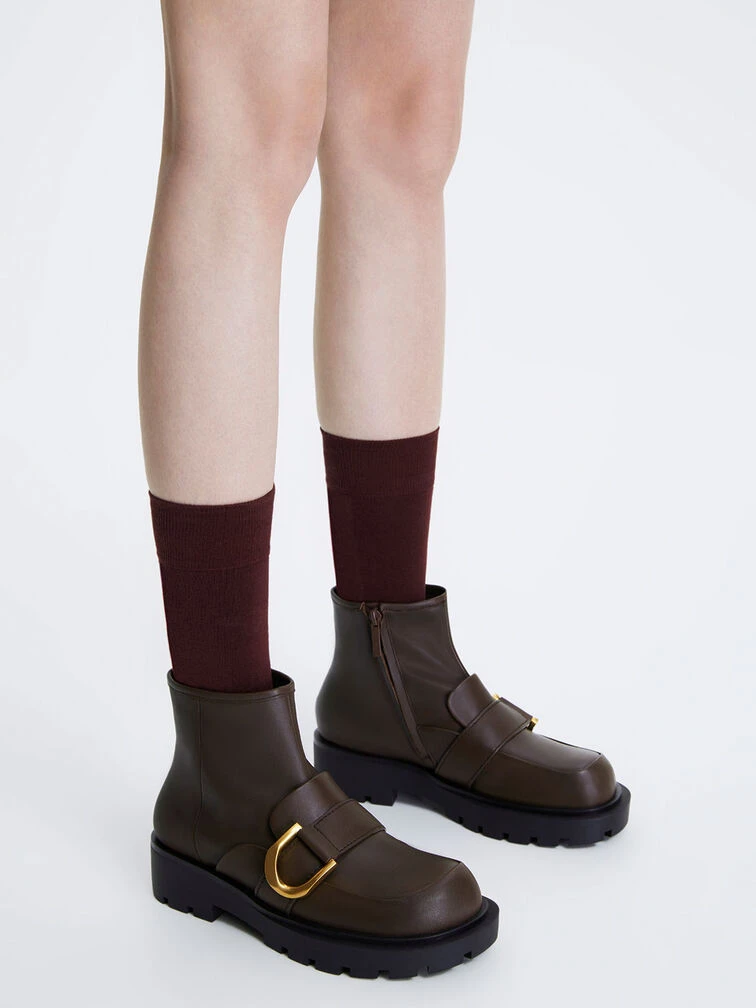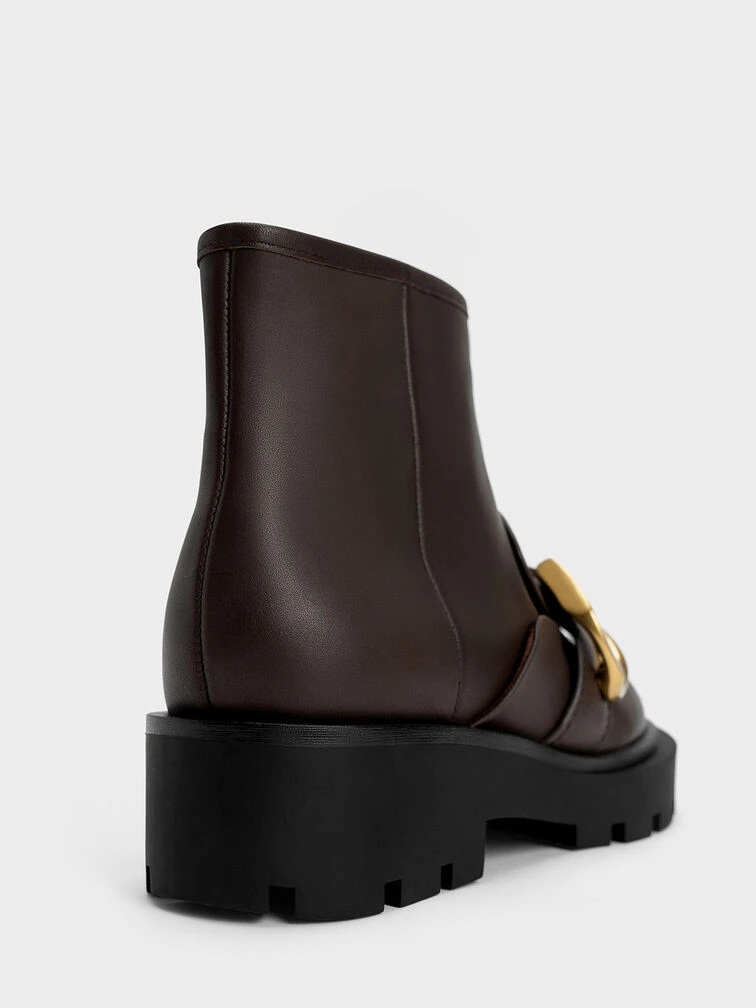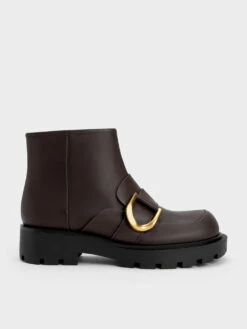 Just as versatile as any black shoes, the dark brown iteration of our Gabine ankle boots are a must-add to your style rotation. Combining the best of the classic shoe silhouettes, these shoes feature a sturdy and comfortable platform base characteristic of loafers while offering the high-cut style and added protection of ankle boots. Featuring thick straps and iconic Gabine buckles across the vamps, these shoes are effortlessly classy. Pair them with cigarette trousers, a bodysuit, and a puffer vest for top marks.