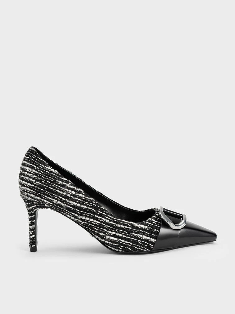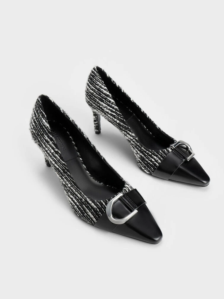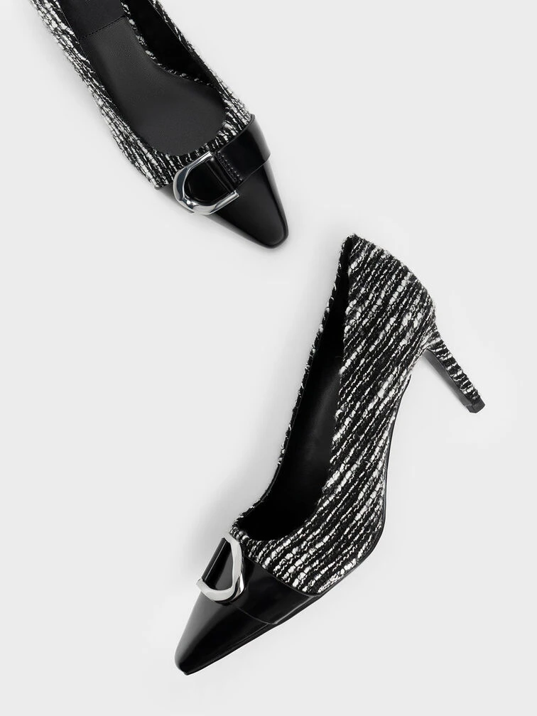 Stride with confidence everytime you slip into these stunning Gabine pumps in a beautiful tweed finish. Set on 7.5 stiletto heels, they are guaranteed to boost your height. We also love how the silver-toned buckle adds a hint of shine and edge to the feminine pointed-toe silhouette. Crafted from genuine leather, these shoes are made to last.