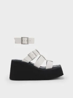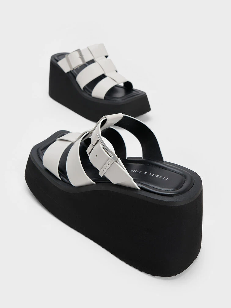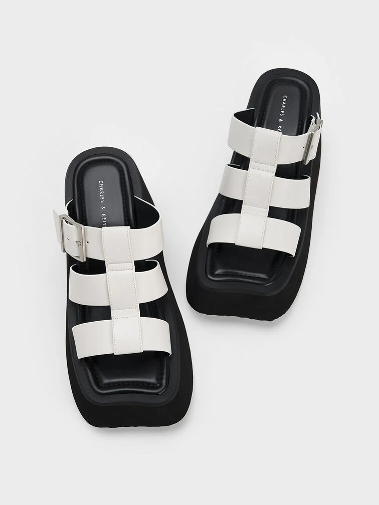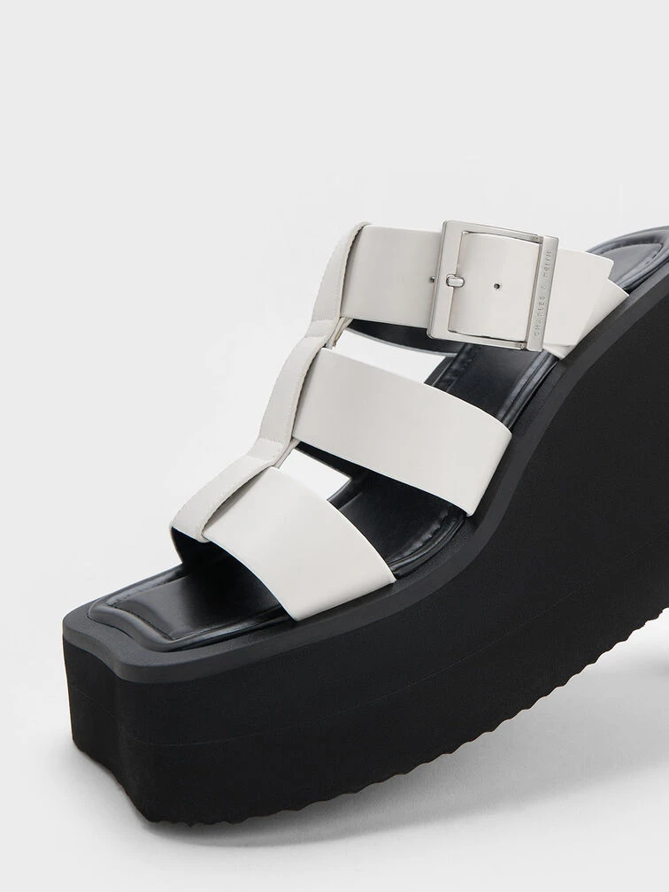 Our Ilsa gladiator sandals come with extra buckled straps that rest just above the ankles, which will help to generate visual interest. In a white colourway, this iteration will match with almost any outfit. Set on chunky wedge soles and featuring modern square-toes, they offer wearability and walkability. Show off the caged design by styling them with cropped hemlines.