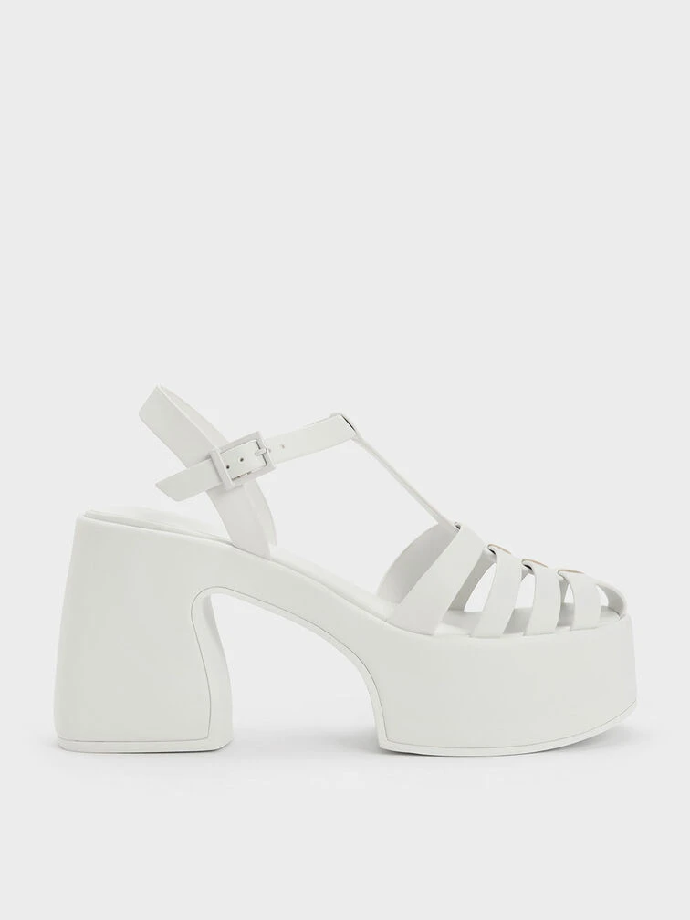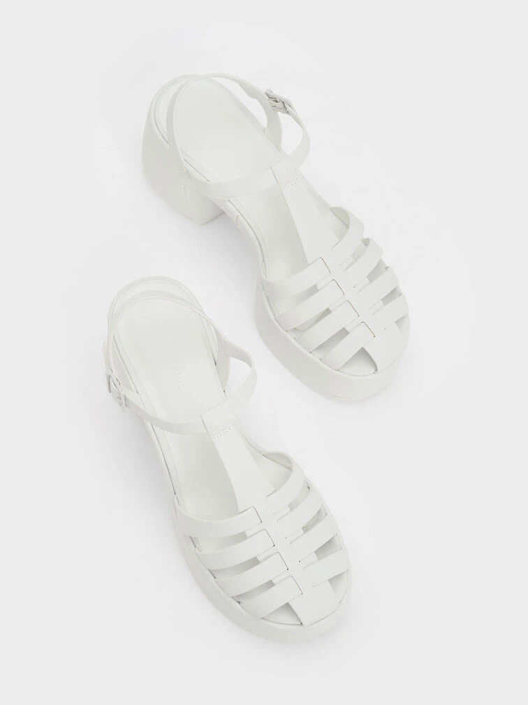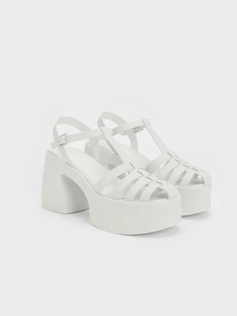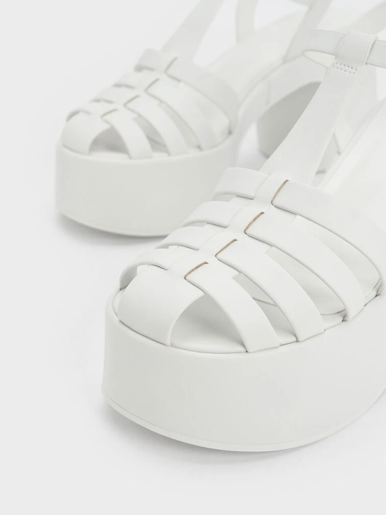 Ace your style game with these interwoven platform gladiator sandals on your feet. In classic white for versatility, these sandals will pair effortlessly with any outfit you choose. Set on chunky 10cm platform heels for a height boost that does not compromise on comfort, they also come fitted with adjustable ankle straps so that you can find a secure and comfortable fit.