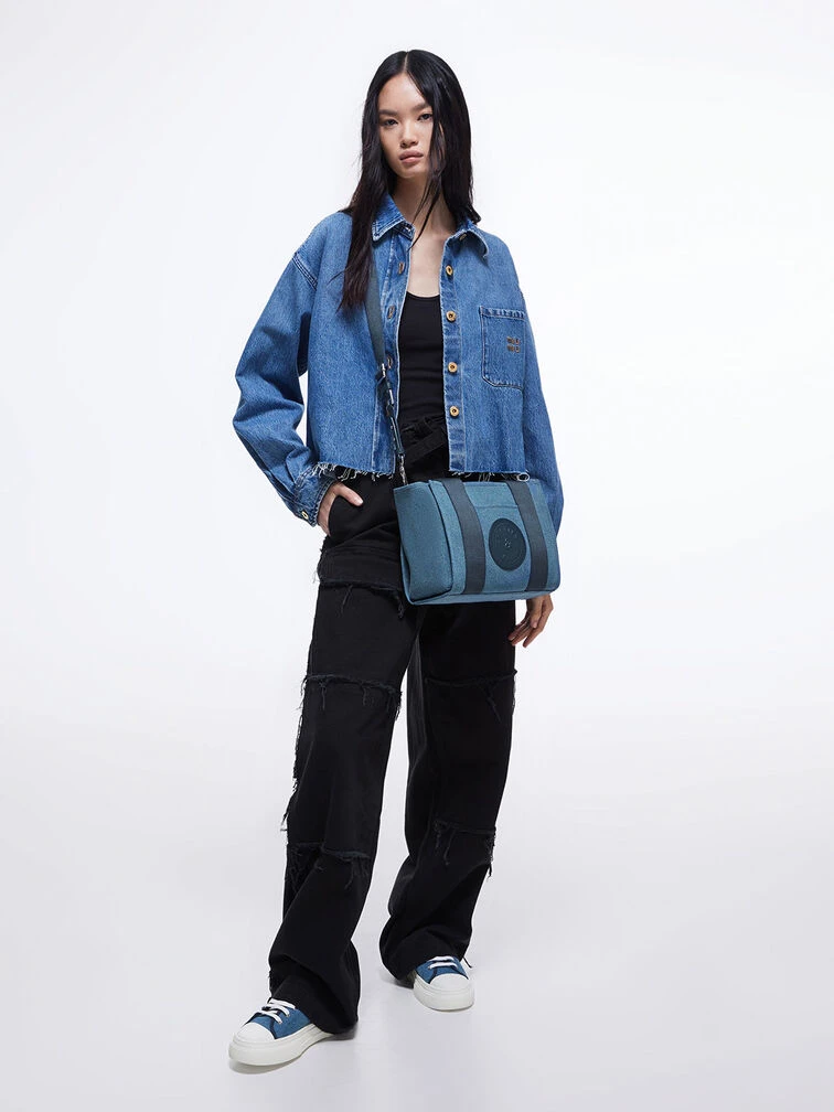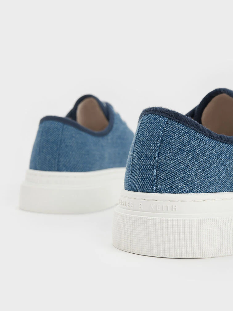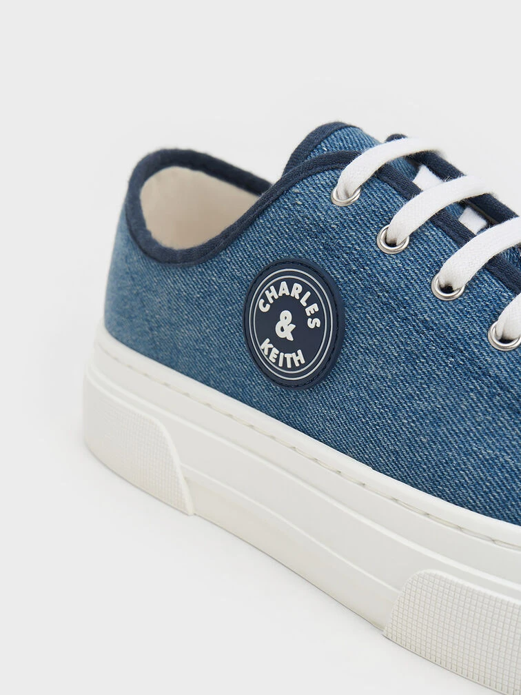 Featuring a striking denim blue finish, dark blue trims and our brand moniker etched on the sides, this pair of low-top sneakers versatile, practical and effortlessly cool at once. Set on 3.8cm platform soles and fitted with classic white laces, this pair of striking shoes is a great example of elevated streetwear that blends form and function with ease.