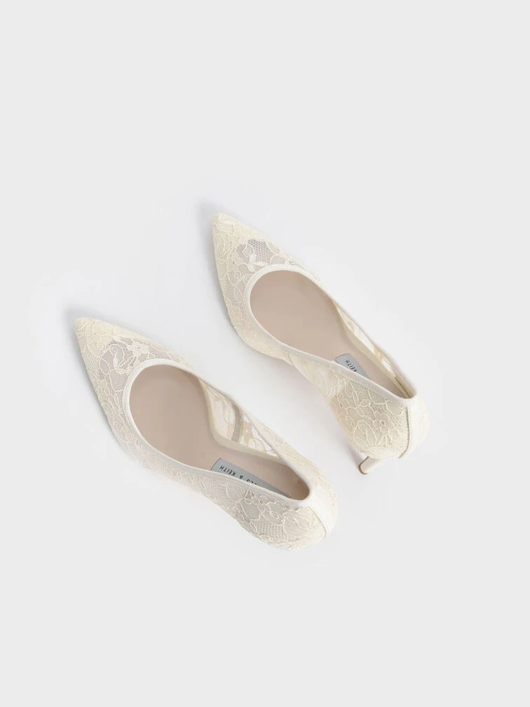 Elegance is already guaranteed when you slip into these pumps. The lovely cream white lace adds an air of femininity and grace, while the 9.5cm stiletto heel and pointed-toe design are an unmatched classic that will never go out of fashion. For a timeless and refined look, we recommend styling these heels with a minimalist nude dress and a top handle bag.