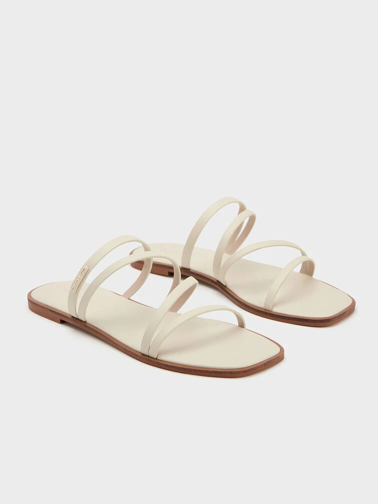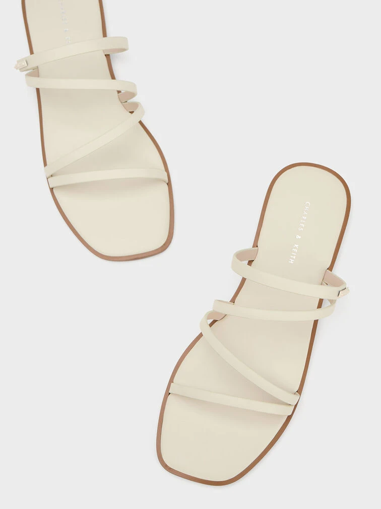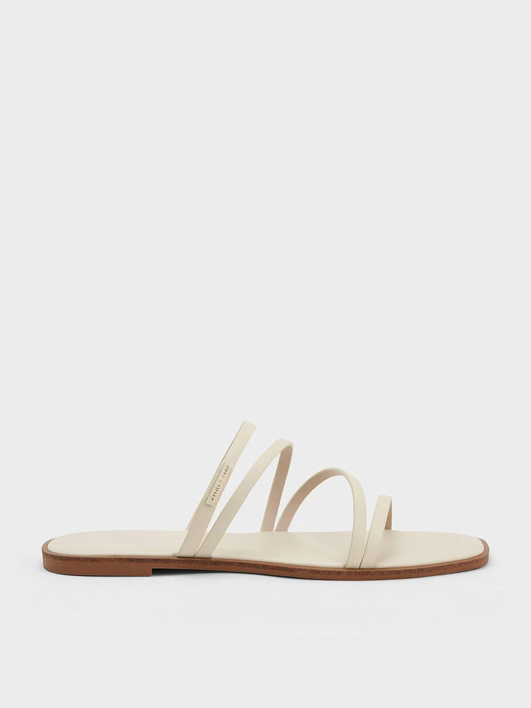 Take your everyday style to the next level with these slide sandals. Featuring a smooth chalk hue and an asymmetric strappy design, these beauties are the ideal blend of versatility and elegance. Team them with everything from cropped jeans to dresses.