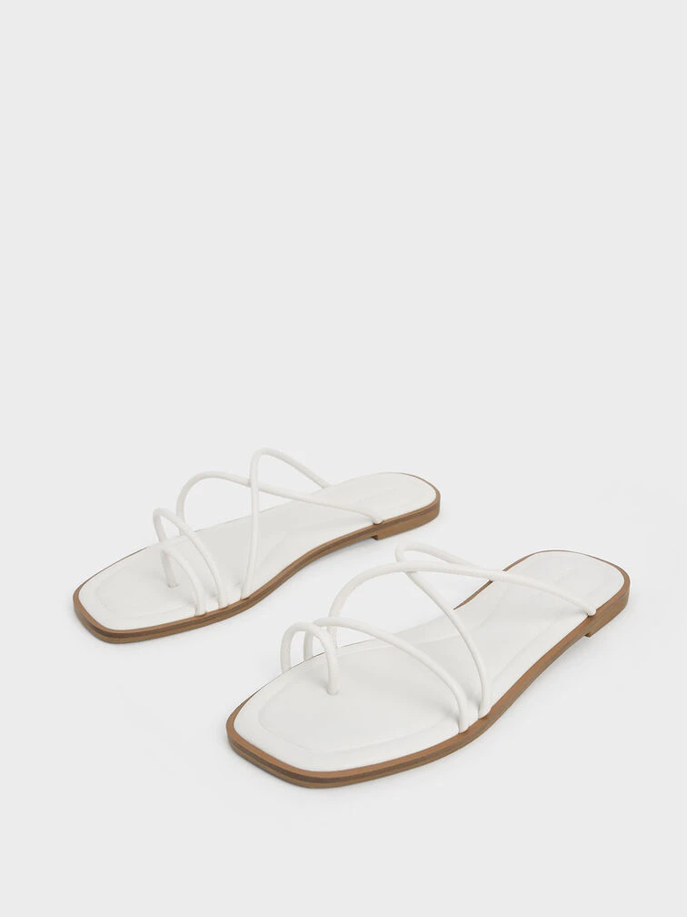 Weather humid days in these Meadow strappy sandals. The clean white finish lets the dynamic criss-crossed straps stand out, elevating the casual shoe style so it can be dressed up or down. For added versatility, the breezy open-toed design is easy to slip into – the flat soles also make these shoes great for all-day wear. Whether it is the beach or the mall, these sandals will never look out of place.