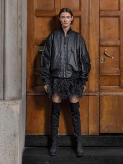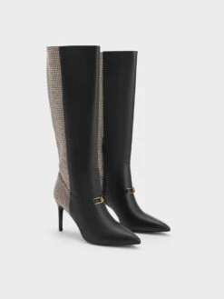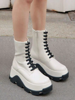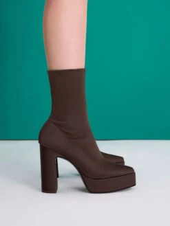 Featuring towering 11cm platform heels, modern square-toes, and a captivating glossy sheen, these ankle boots will inject a commanding presence into your overall look. To add to their allure, these boots are adorned with metallic accents that beautifully contrast against the ultra-chic all-black finish, serving as the perfect finishing touch.