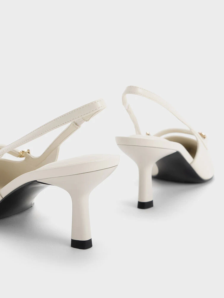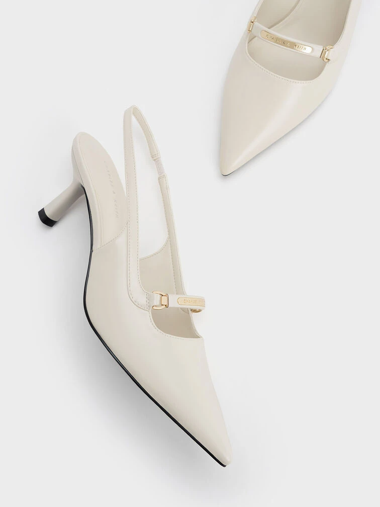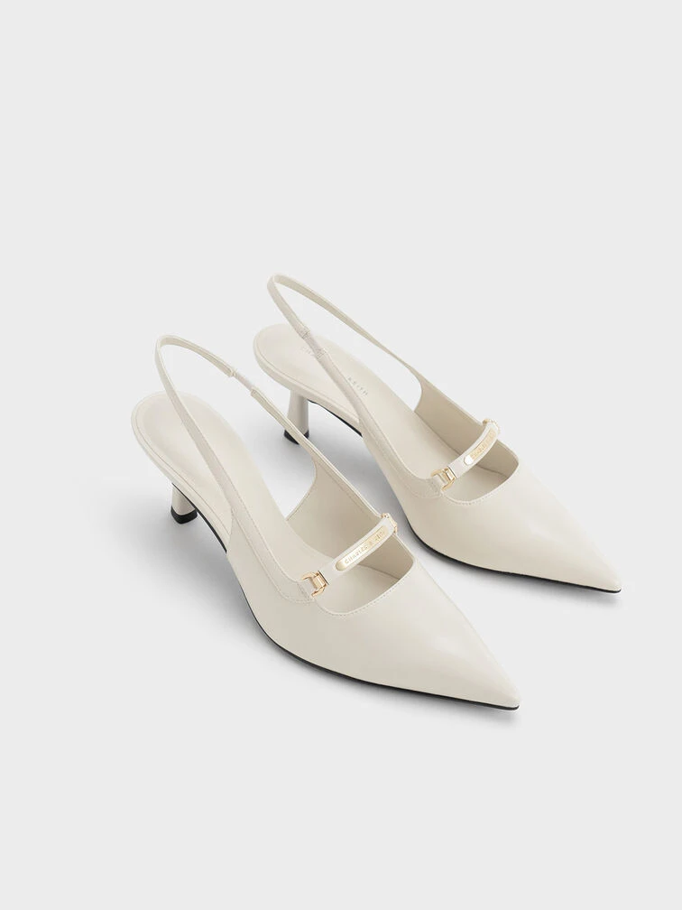 If you love slingback pumps, this refreshed version will become an instant favourite. With gold-toned metallic accents adorning the front, they exude an understated glamour in match-all cream. Additional front straps accentuate the feet, while seamlessly balancing the iconic slingback straps. Reach for these pumps as an elevated option that you can wear day and night, dressed up or down.