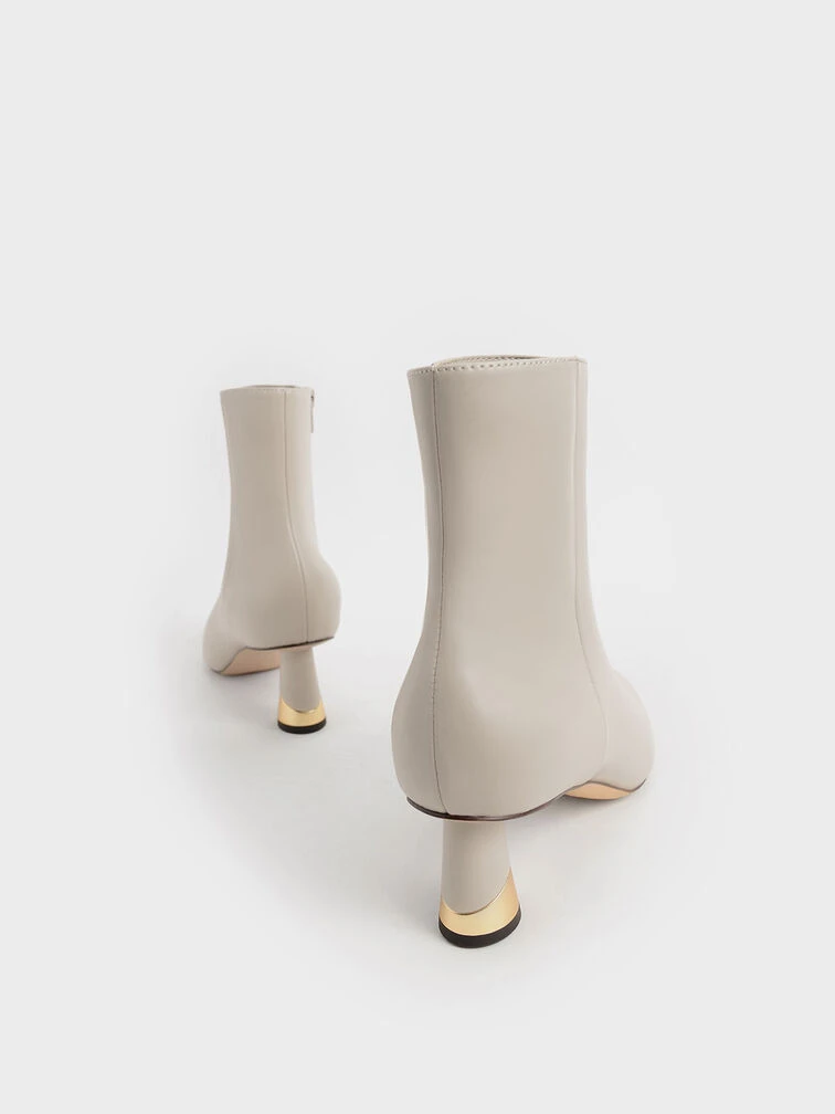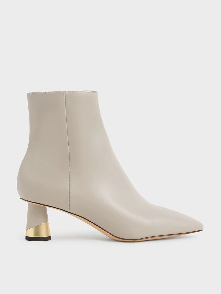 Fact: a pair of neutral-coloured ankle boots is a reliable wardrobe ally to pull on for almost any event, no matter the season. Also a fact: our latest ankle boots collection takes a classic design one step further with a metallic accent heel that will catch eyes wherever you go. Plus, it comes with a handy zip at the side for you to slip in and out from. Use them to anchor a bright floral dress and a quilted shoulder bag.