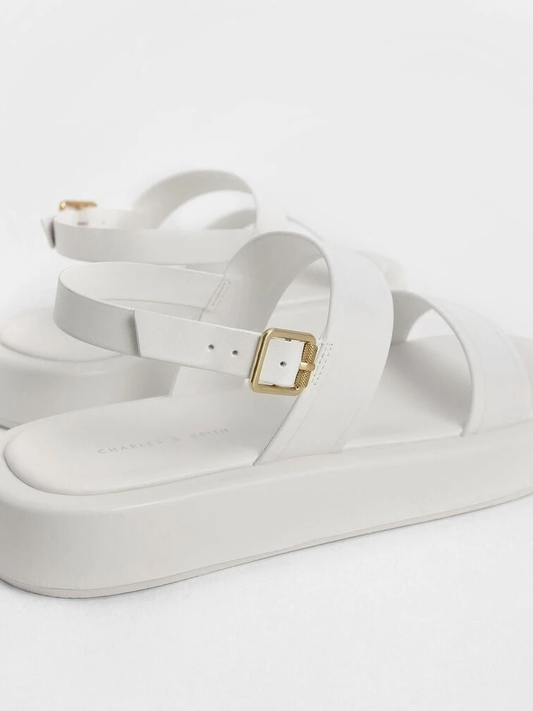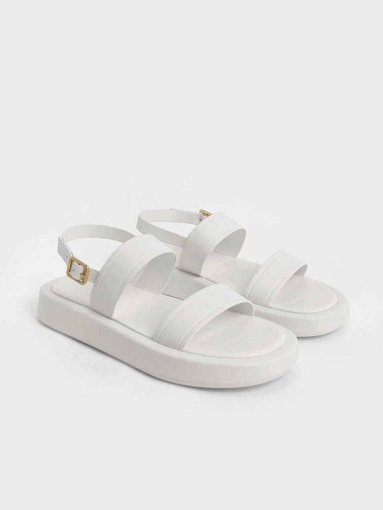 Reach for these white platform sandals when you are trying to achieve a laid-back yet polished look. Whether it’s for afternoon tea, or Sunday brunch, let this sophisticated number have its moment in the sunshine. A snug fit is guaranteed, thanks to the adjustable slingback strap. Featuring a hint of gilded hardware by way of the gold-tone metallic buckle, this pair is sure to elevate your everyday ensembles. Let it be the finishing touch to comfy joggers and a ribbed tank top.