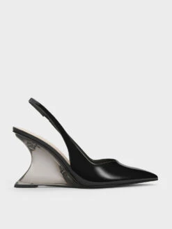 A modern twist on a classic, these slingback pumps come with stunning sculptural heels that will turn heads wherever you go. To top it off, these wedge heels have an eye-catching see-through design. The pointed-toed silhouette keeps these shoes looking sleek and polished, while the black patent finish exude a glossy shine. Wear them with a classy shirt dress for an effortlessly chic desk-to-dinner look.