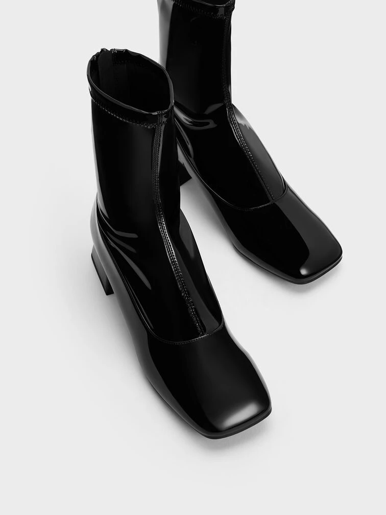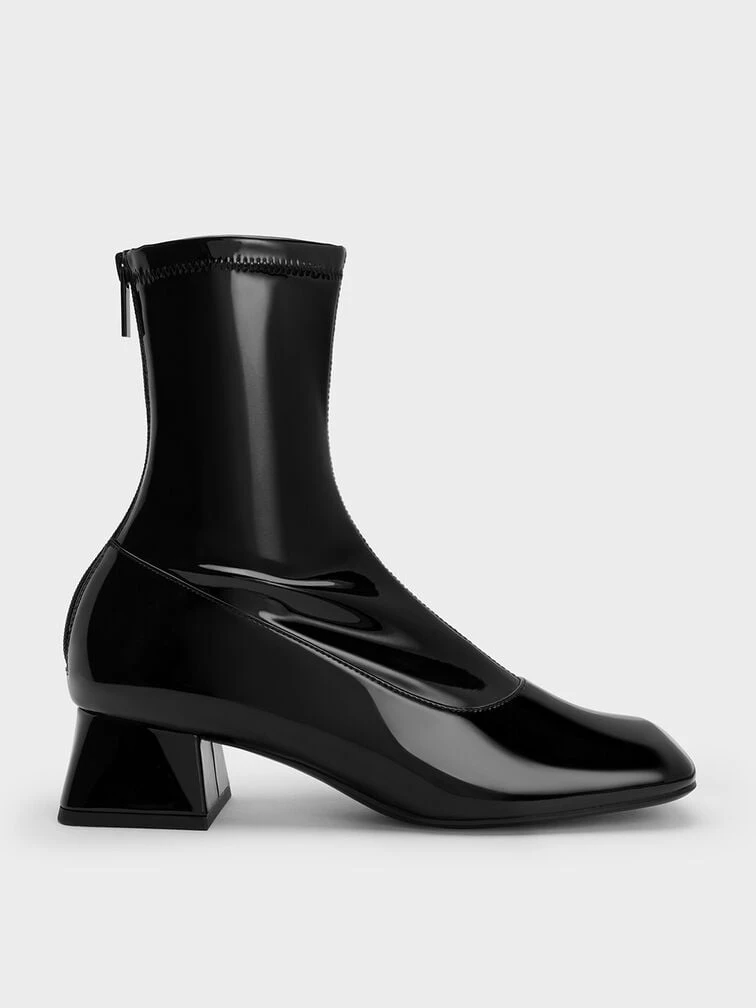 For a stylish statement you can wear every day, consider picking up this pair of patent ankle boots. The square-toed silhouette and glossy patent finish make these boots visually intriguing, yet they remain versatile enough to match any outfit. With their flattering high-cut design, these boots add sleekness while elongating your frame. But that’s not all, the 4cm trapeze block heels provide a comfortable, subtle height boost, and the back-zip closures offer ease of wear.
