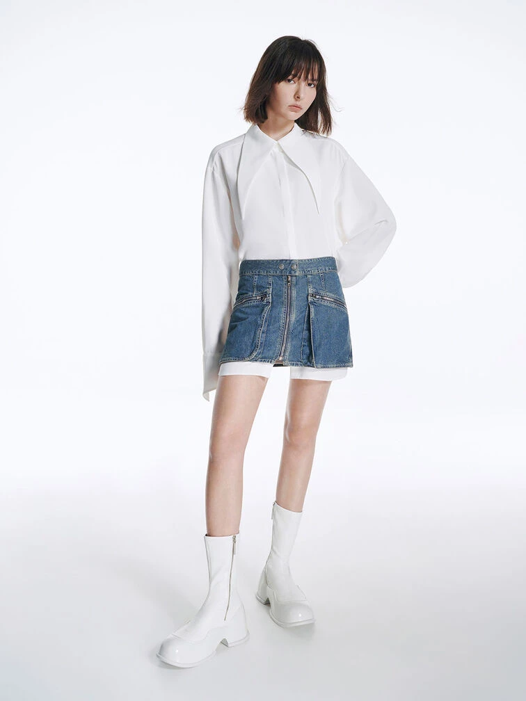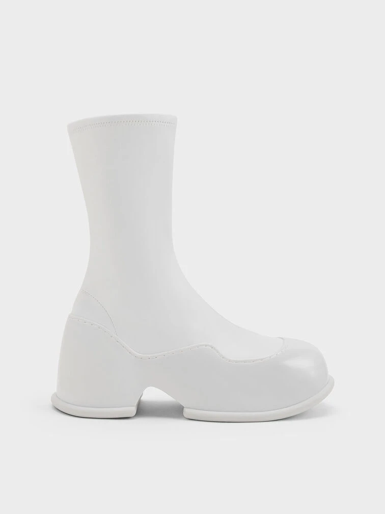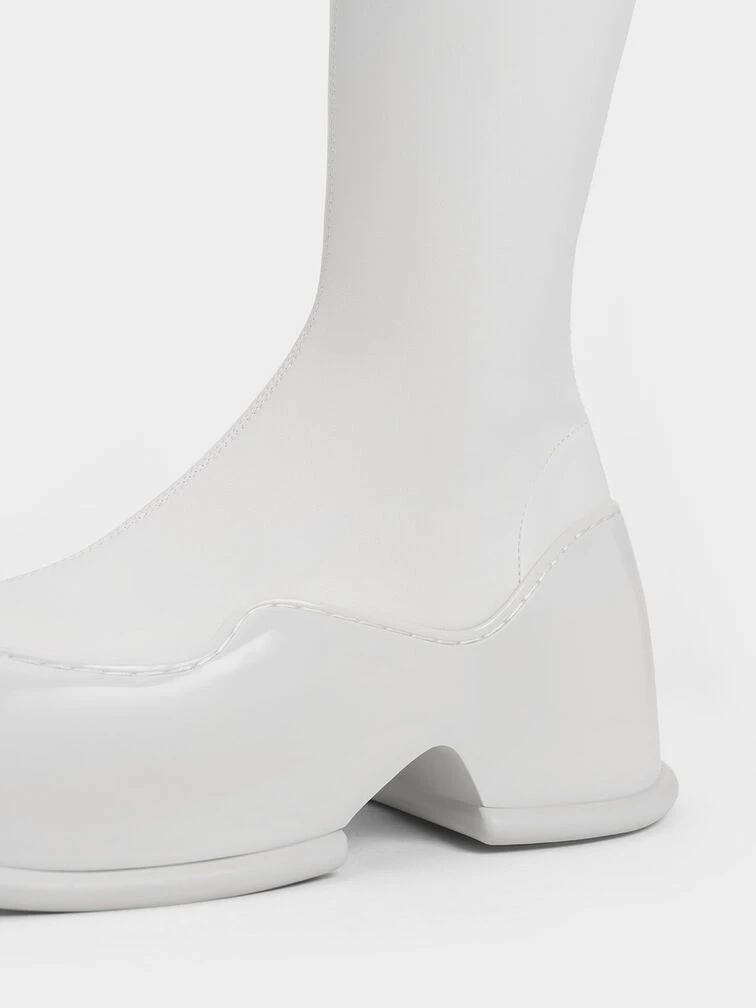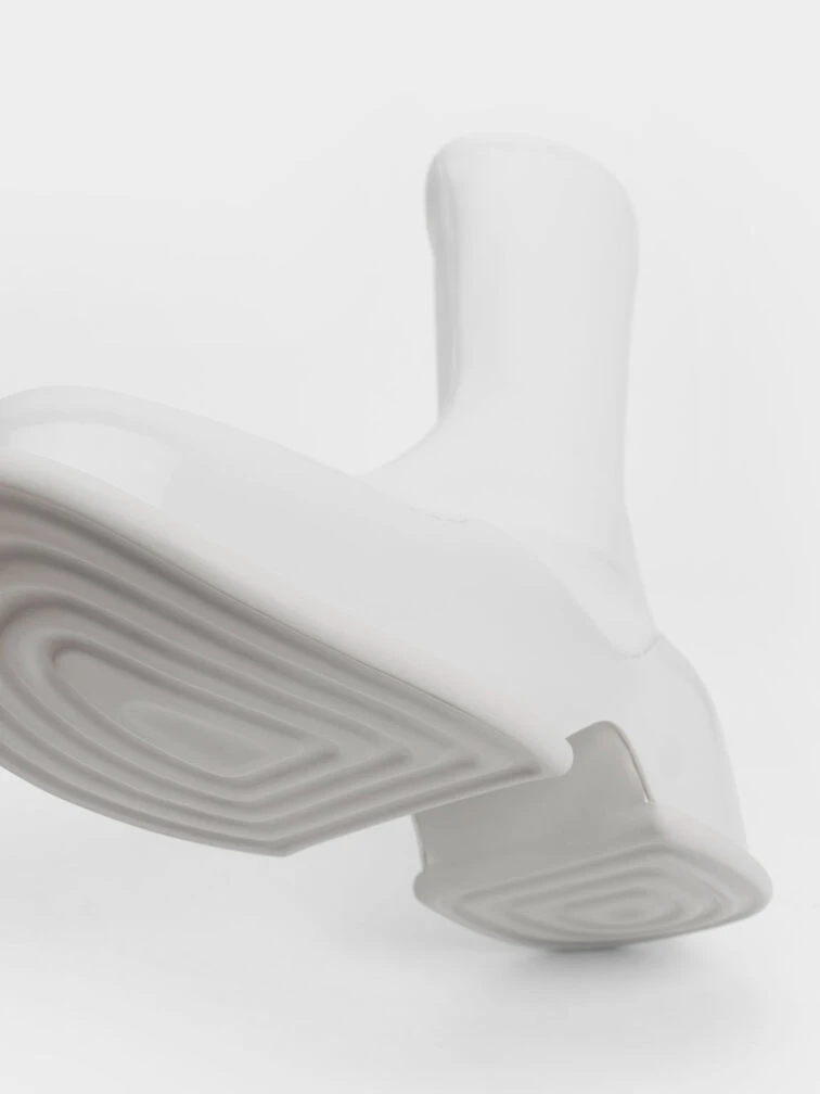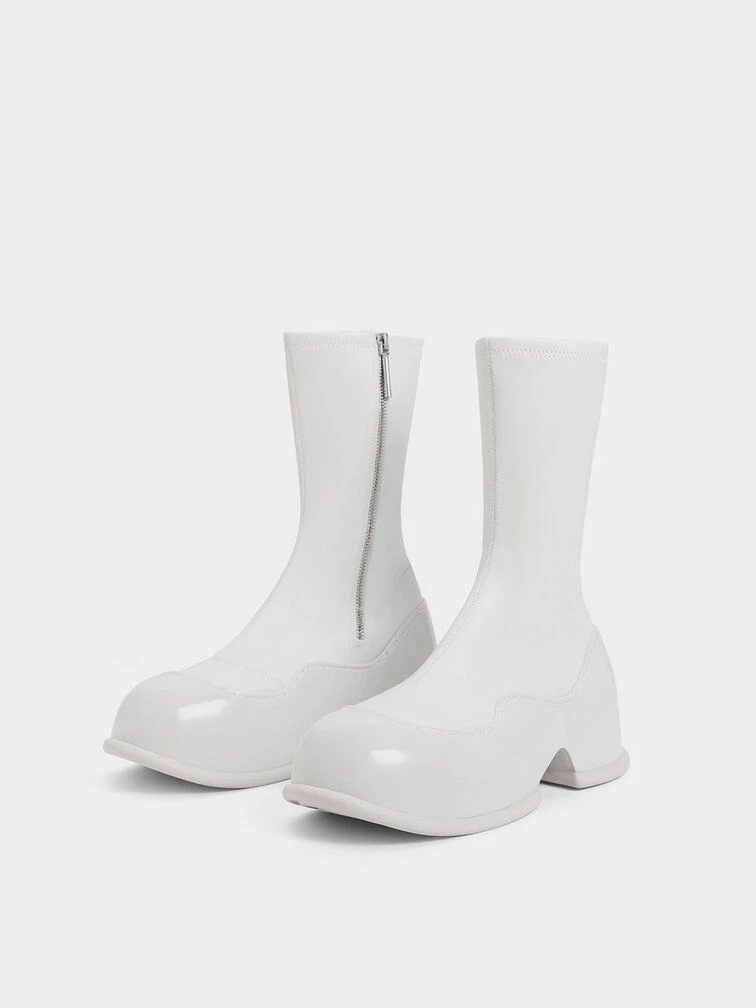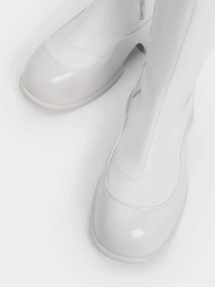 These Pixie calf boots will make you stand out in all the right ways. Featuring an immaculately polished, bright all-white finish, these shoes are minimalist and captivating at once. They feature distinctive tube-lined platform soles in a glossy patent finish that creates a striking contrast with the soft, matte uppers. Bonus points for the side zips that make them easy to put on and take off.