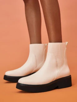 If you are looking for a pair of all-white boots that will complement any outfit, you have found just the one in these Pixie ankle boots. Featuring a sleek and sculptural silhouette marked by smooth, rounded curves, it is the polished and stark white finish that set these boots apart. Set atop outstanding 10.5cm platforms, they offer a flattering stature boost – their side zips also make them a breeze to put on and take off.
