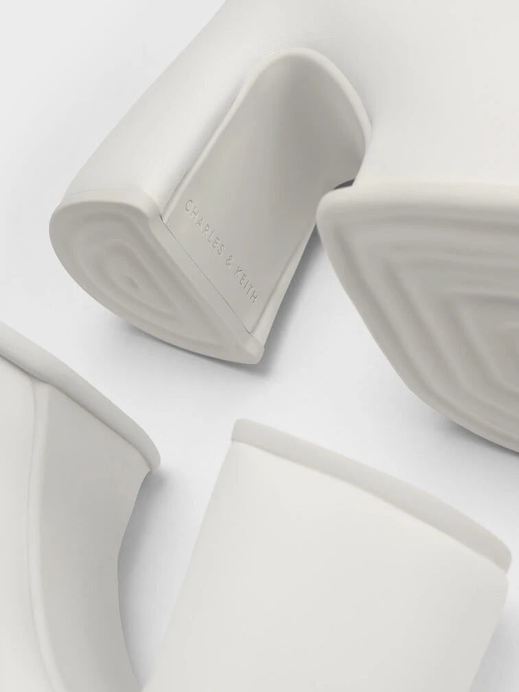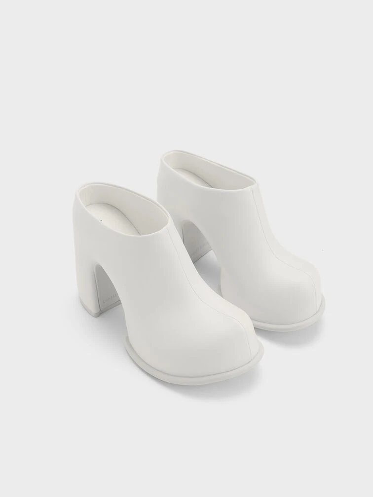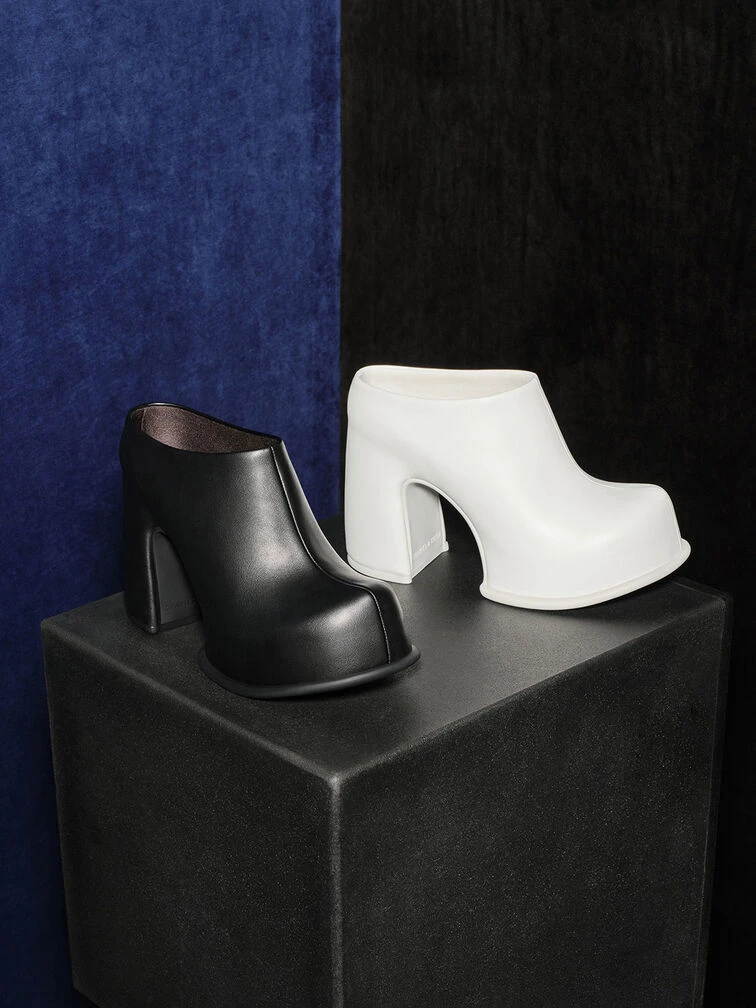 If you are minimalist looking for a pair of shoes that will make maximum style impact, these Pixie platform mules are certainly one to keep a lookout for. Featuring an avant-garde and sculptural-like silhouette, along with the outstanding 10.5cm block heels and complete with a polished white finish, these shoes will certainly turn heads even from afar.