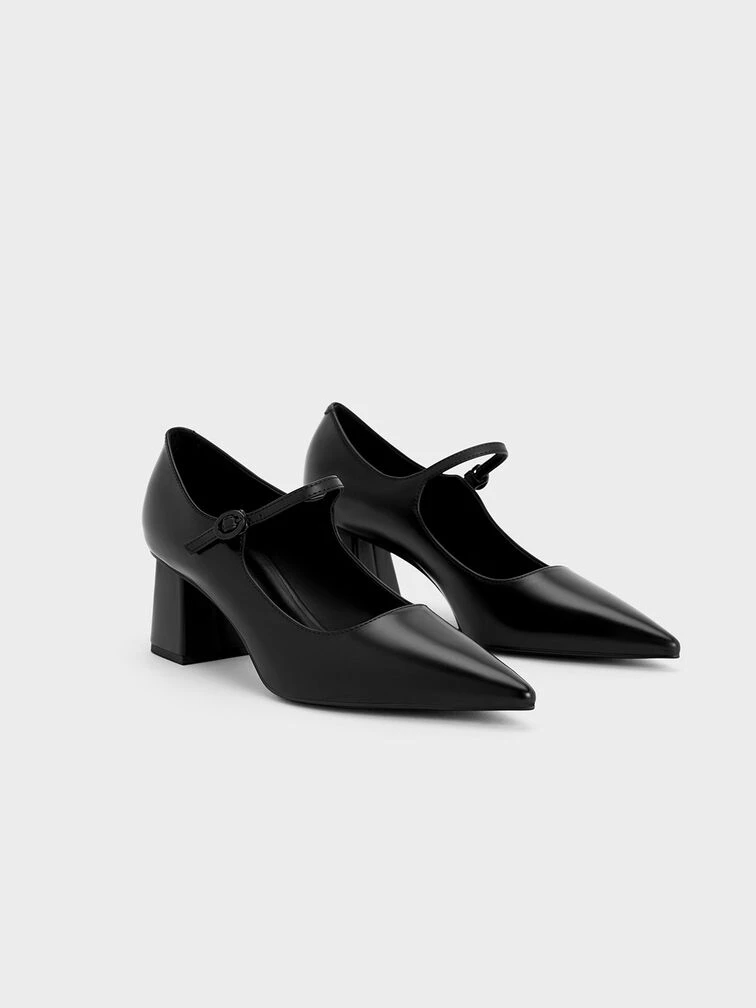These Mary Jane pumps are stylish dress shoes that will complete all your workwear outfits. The classic Mary Jane silhouette has been sharpened for a polished and put-together aesthetic with a pointed-toed design in a glossy black finish for maximum sophistication. Dainty buckled straps across the vamps add a touch of femininity while offering a customisable fit. For a leg-lengthening effect, block heels offer a flattering and comfortable height boost – these versatile shoes will take you from work to your after-dark engagements.