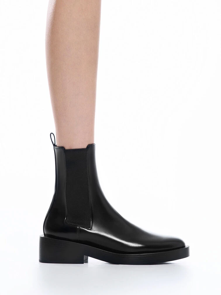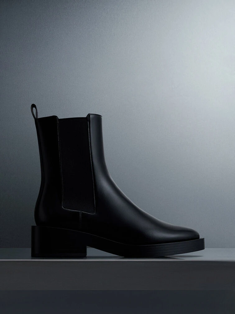 Chelsea boots are an undisputed fall staple shoe, and this pair is as classic as it gets. These versatile shoes feature sleek almond toes, stretchable side panels for easy wearing and elegant stacked heels for a modest 5.5cm height boost. In black for maximum style mileage, they will complement everything in your wardrobe, from voluminous dresses to straight-leg pants.