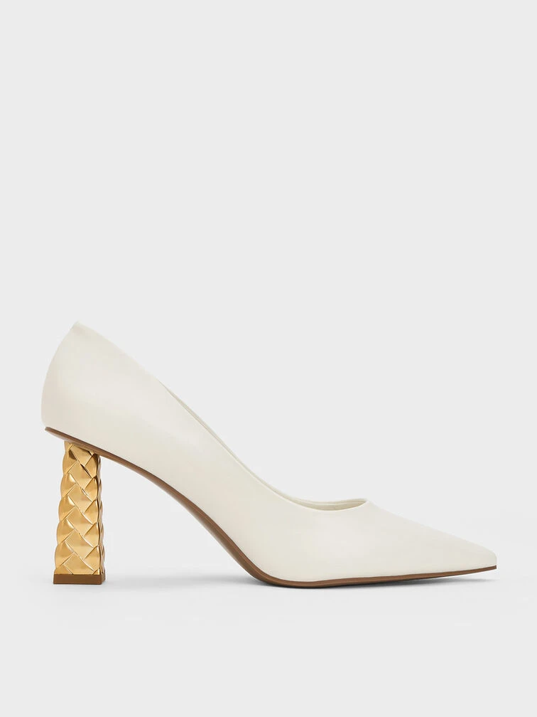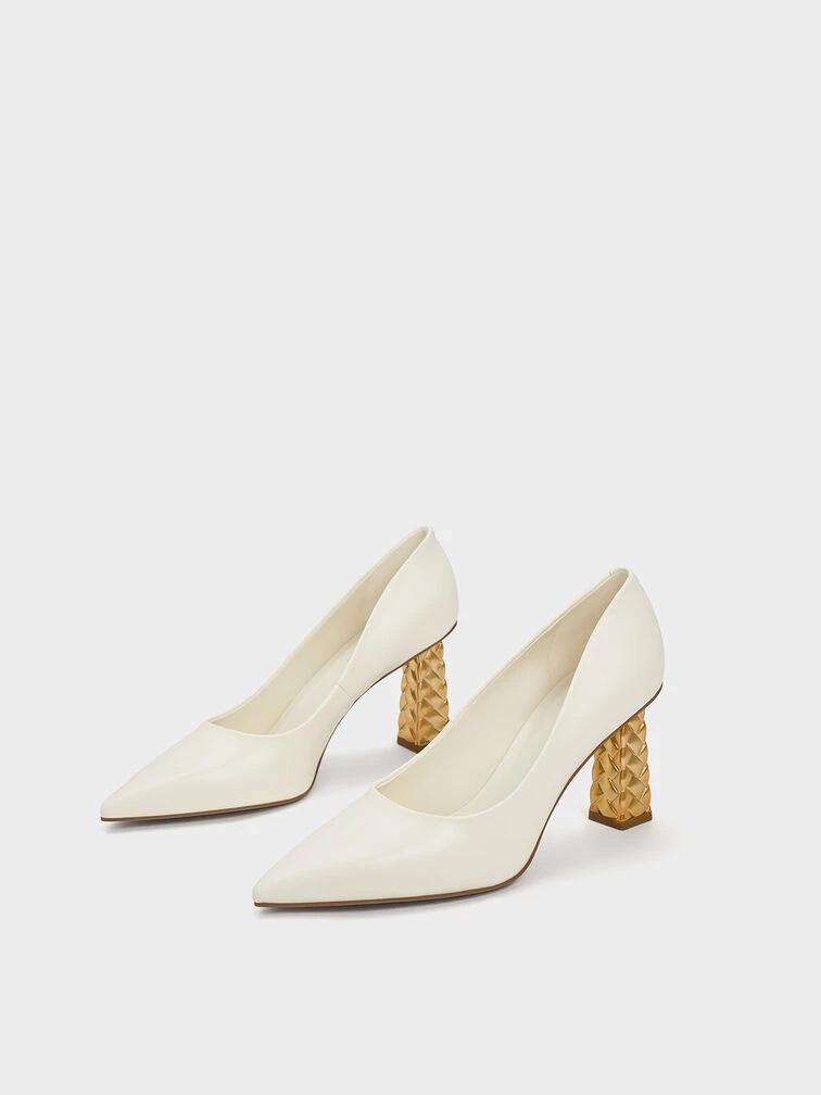 This pair refreshes the timeless pointed-toed pump with a subtle twist. Featuring a classic and elegant silhouette and a clean, bright chalk finish, these shoes will slot seamlessly into your existing wardrobe with ease. To give these pumps extra flair, the gold-toned quilted trapeze heels add an element of elegance and visual interest.