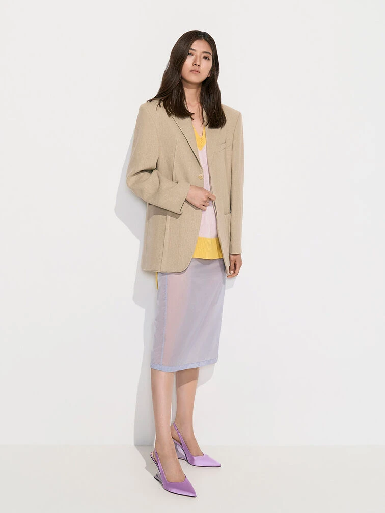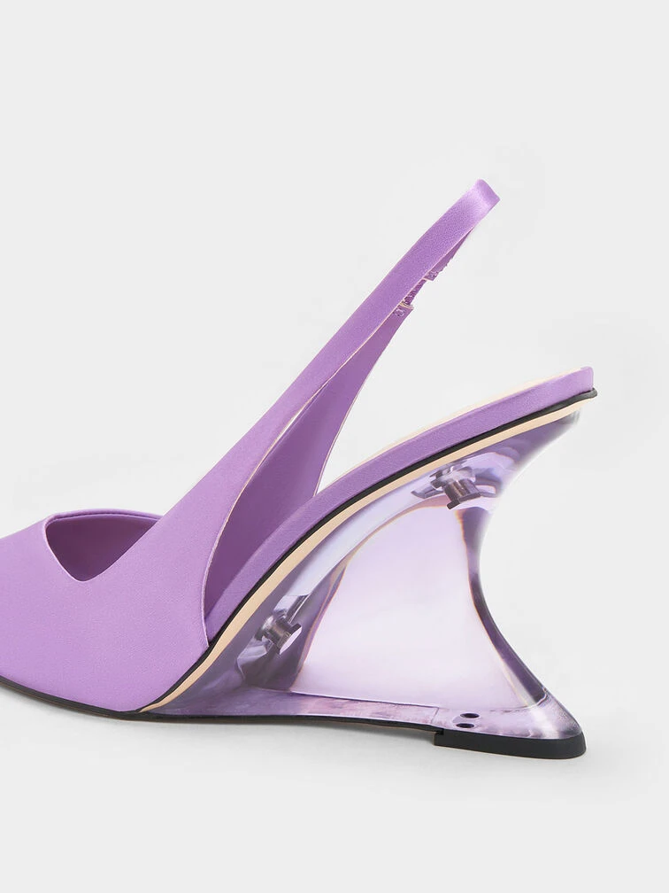 Add a fun and trendy element to your workwear wardrobe with these slingback wedges in a vivid purple. While the classic pointed-toed silhouette keeps your look professional, the sculptural heels elevate this pair with elegant allure and sophistication. Put them on whenever you need a mood and style boost – they are great for office dress-down days and can easily take you from your desk to happy hour.