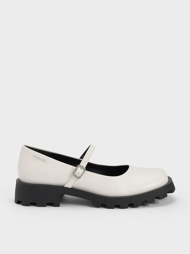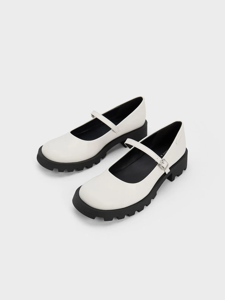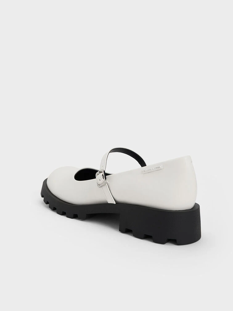 These Mary Janes feature white uppers and are set on chunky gripped soles in black, making them the perfect accessory for your monochrome outfits. Featuring rounded square-toes and matching toplines, the design elements work together to create a pleasing symmetry. Simply adjust the slim buckled straps for a snug fit.