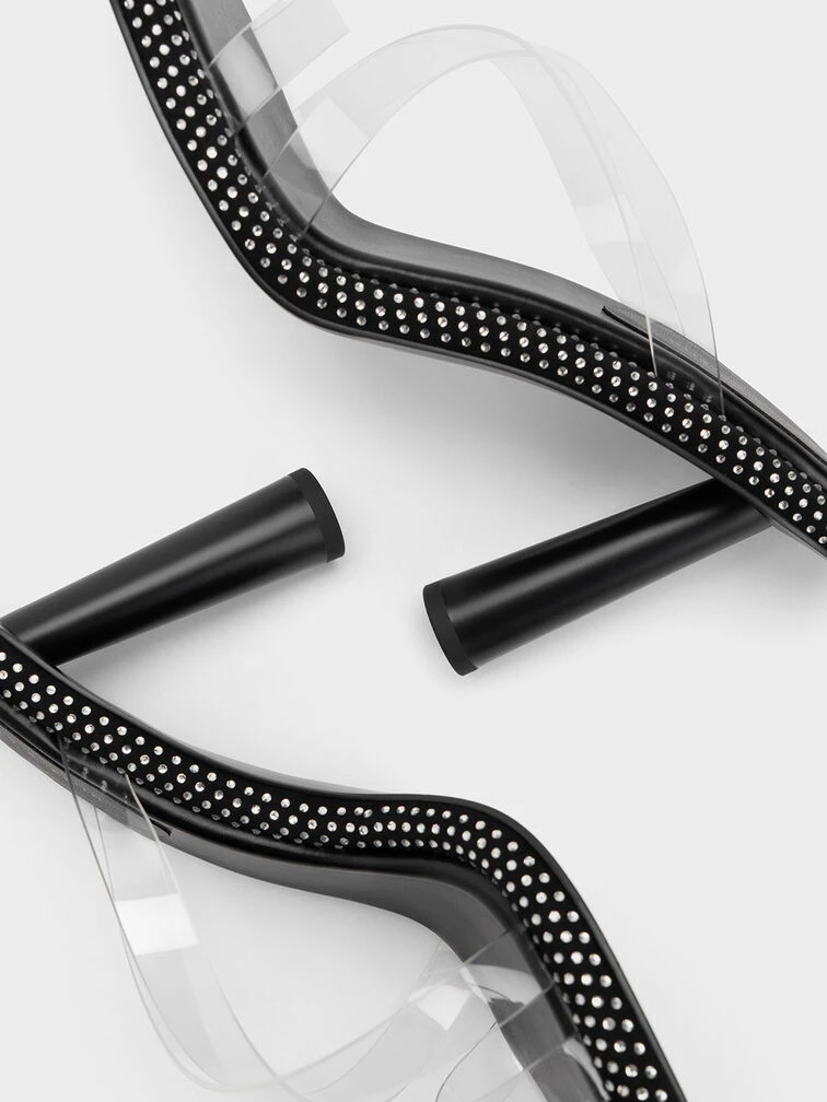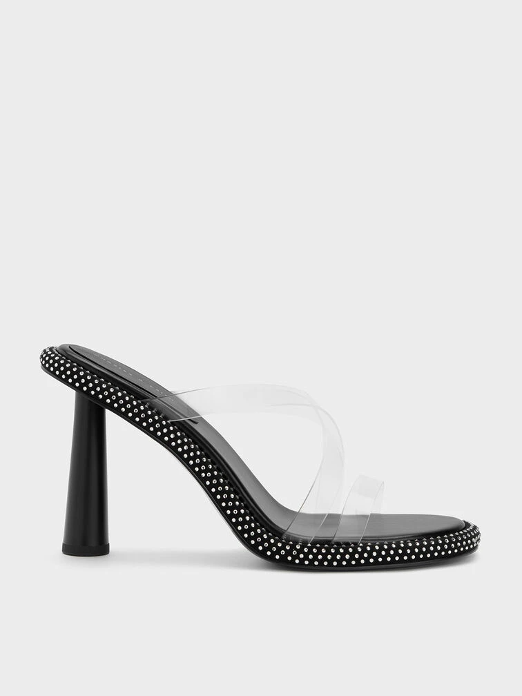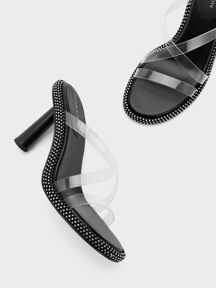 When it comes to making a bold style statement, this head-turning iteration of our crossover mules is the pair to reach for. Juxtaposing a classic black finish with a crystal-embellished outsole to create a visually impactful contrast, these shoes will sparkle brilliantly when they catch the light. Taking it up a notch with see-through crossover straps, these mules will add irresistible glamour to your every look.