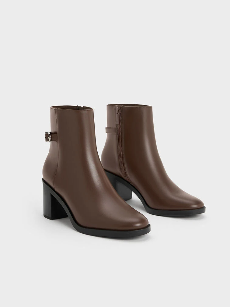 If you have a penchant for neutral hues, which are every bit as versatile as black, these ankle boots will be right up your alley. The warm dark-brown finish exudes effortless elegance that will complement your existing wardrobe with ease – they can be worn all year round. The buckle details on the sides add a simple yet stylish touch to the design, while the side zips make them easy to wear.