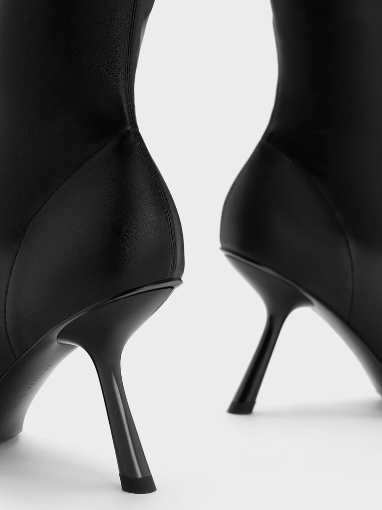 Introducing classic knee-high boots with a twist – this sleek pair features unique slanted heels that will add a touch of modern elegance to your everyday look. The knee-high length elongates your legs, creating a flattering silhouette that pairs perfectly with skirts, dresses, or your favourite skinny jeans. The slanted heels add a stylish flair while ensuring stability and ease of wear, allowing you to stride confidently wherever you go this fall and winter season.