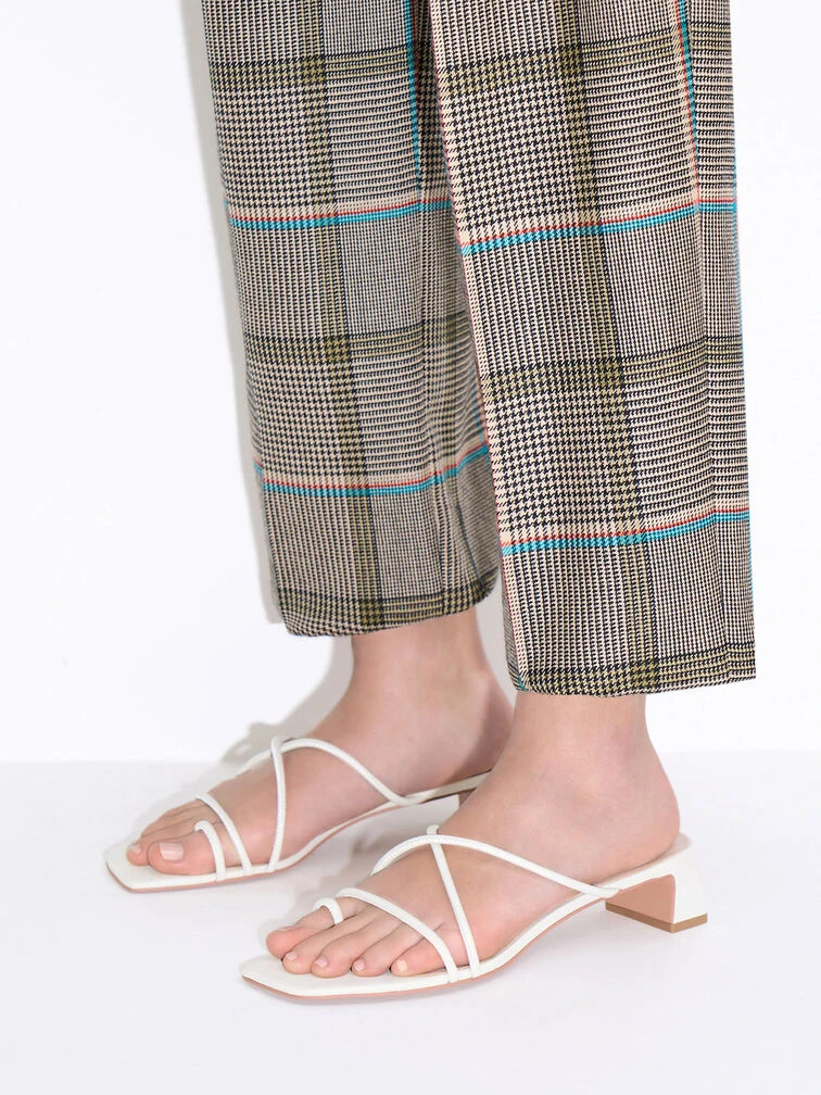 Put your best foot forward this season when you step out in these strappy toe ring sandals. Made with a low 3.5cm sculptural block heel that makes them easy to walk and stand in, this outstanding white pair also features a toe ring loop that ensures a comfortable fit. Pro style tip: pair it with a off-shoulder dress for your TGIF look, or use it to anchor a buttoned-down shirt, denim shorts and a two-tone shoulder bag ensemble.