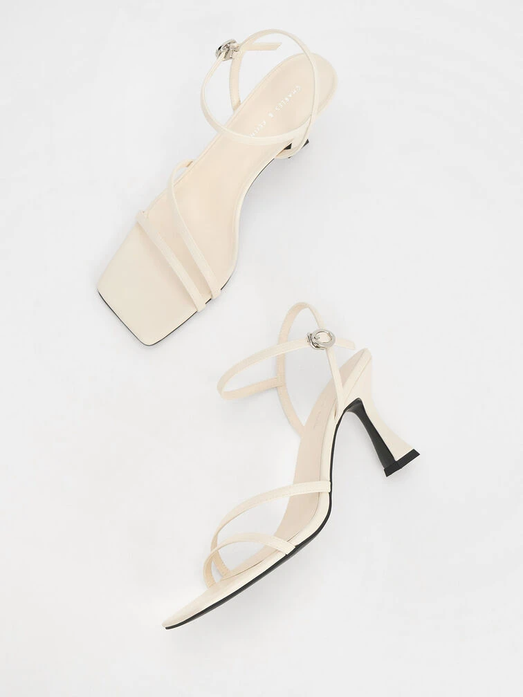 Every wardrobe needs an elegant pair of sandals, and these timelessly versatile strappy sandals are the perfect choice. The soft chalk finish pairs well with delicate straps across the vamps for a feminine silhouette, while adjustable ankle straps offer a customised fit. Featuring sleek 7.5cm trapeze heels, they will elongate your frame and add a sculpted element to your everyday outfits.