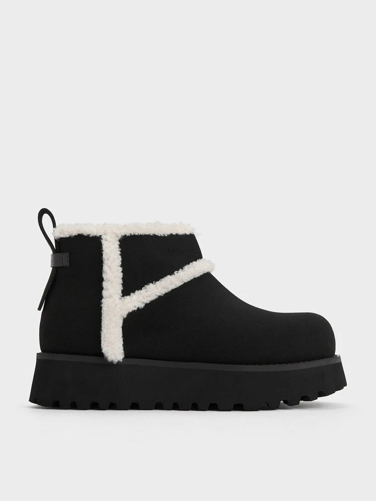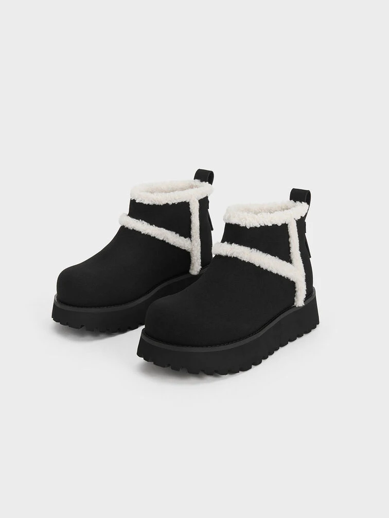 Amp up the cosy factor this winter with these textured fur-trim ankle boots. Lined with light-coloured fur on the inside of the shoes, as well as on the uppers, the result is a two-toned, visually striking design. To maximise comfort, padded flatform soles offer a height boost and all-day walkability, so you will want to slip into these on relaxed off-duty days.