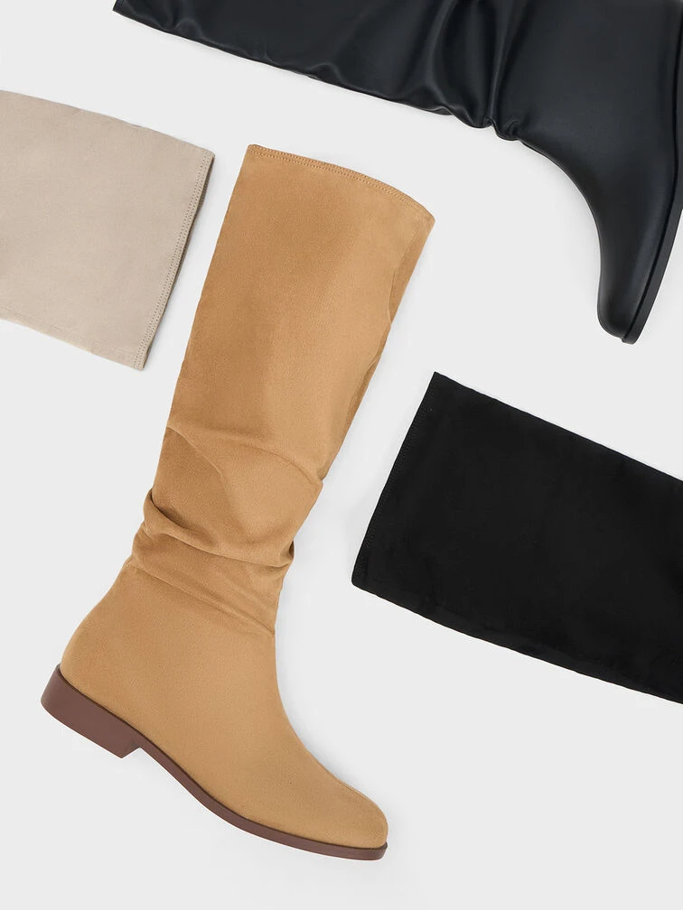 You can count on these knee-high boots to see you through the colder months of fall and winter in style. Featuring a classic round-toed silhouette, coupled with a relaxed fit, these boots are great for casual day outs, whether you are running errands or taking a stroll in the city. The ruched design will add textural flair to all of your looks.